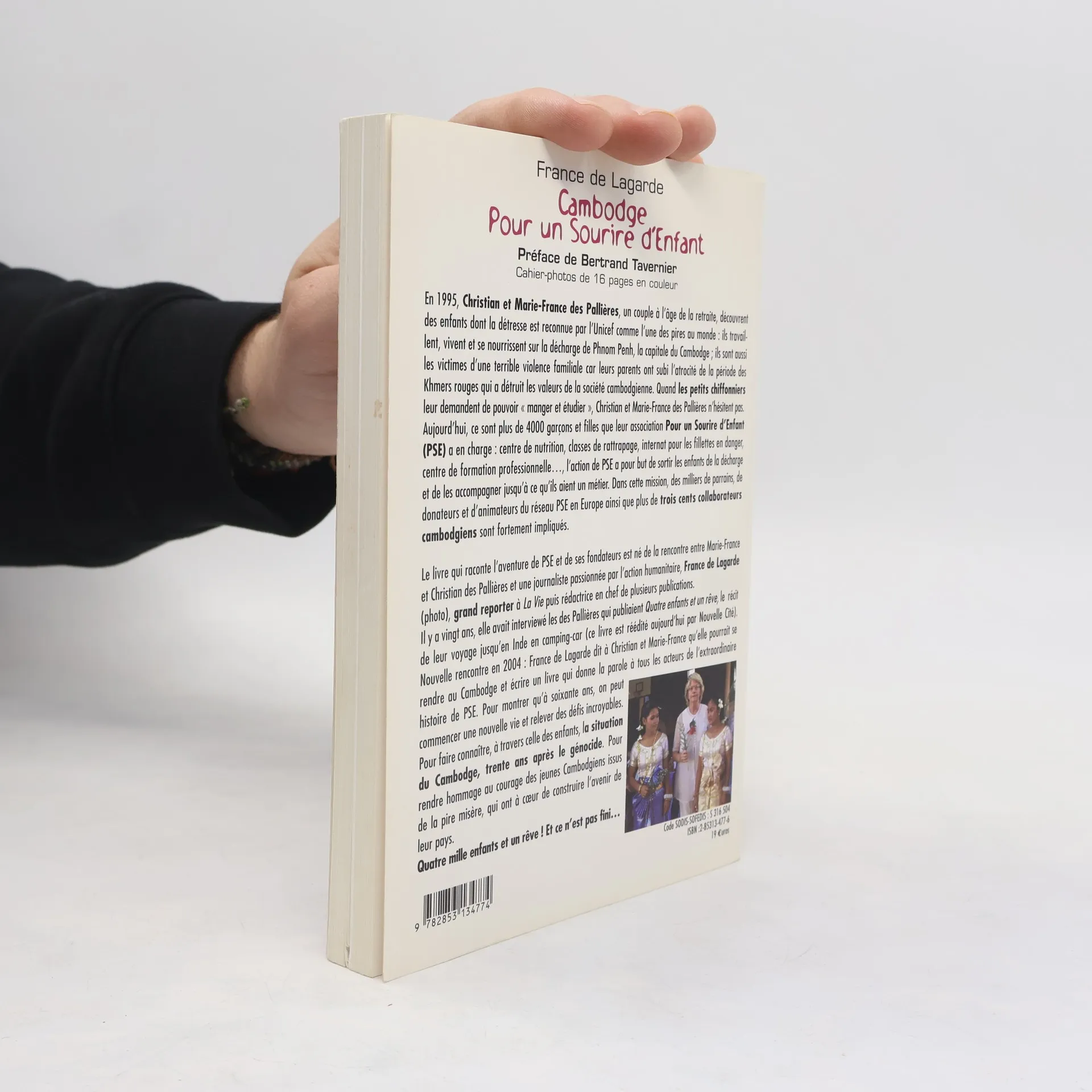 En 1995, Christian et Marie-France des Pallières, un couple à l'âge de la retraite, découvrent des enfants dont la détresse est reconnue par l'Unicef comme l'une des pires au monde : ils travaillent, vivent et se nourrissent sur la décharge de Phnom Penh, la capitale du Cambodge ; ils sont aussi les victimes d'une terrible violence familiale car leurs parents ont subi l'atrocité de la période des Khmers rouges qui a détruit les valeurs de la société cambodgienne. Quand les petits chiffonniers leur demandent de pouvoir " manger et étudier ", Christian et Marie-fronce des Pallières n'hésitent pas. Aujourd'hui, ce sont plus de 4000 garçons et filles que leur association Pour un Sourire d'Enfant (PSE) a en charge : centre de nutrition, classes de rattrapage, internat pour les fillettes en danger, centre de formation professionnelle..., l'action de PSE a pour but de sortir les enfants de la décharge et de les accompagner jusqu'à ce qu'ils aient un métier. Dans cette mission, des milliers de parrains, de donateurs et d'animateurs du réseau PSE en Europe ainsi que plus de trois cents collaborateurs cambodgiens sont fortement impliqués. Le livre qui raconte l'aventure de PSE et de ses fondateurs est né de la rencontre entre Marie-France et Christian des Pallières et une journaliste passionnée par l'action humanitaire, France de Lagarde (photo), grand reporter à La Vie puis rédactrice en chef de plusieurs publications. Il y a vingt ans, elle avait interviewé les des Pallières qui publiaient Quatre enfants et un rêve, le récit de leur voyage jusqu'en Inde en camping-car (ce livre est réédité aujourd'hui par Nouvelle Cité). Nouvelle rencontre en 2004 : France de Lagarde dit à Christian et Marie-France qu'elle pourrait se rendre au Cambodge et écrire un livre qui donne la parole à tous les acteurs de l'extraordinaire histoire de PSE. Pour montrer qu'à soixante ans, on peut commencer une nouvelle vie et relever des défis incroyables. Pour faire connaître, à travers celle des enfants, la situation du Cambodge, trente ans après le génocide. Pour rendre hommage au courage des jeunes Cambodgiens issus de la pire misère, qui ont à cœur de construire l'avenir de leur pays. Quatre mille enfants et un rêve ! Et ce n'est pas fini..