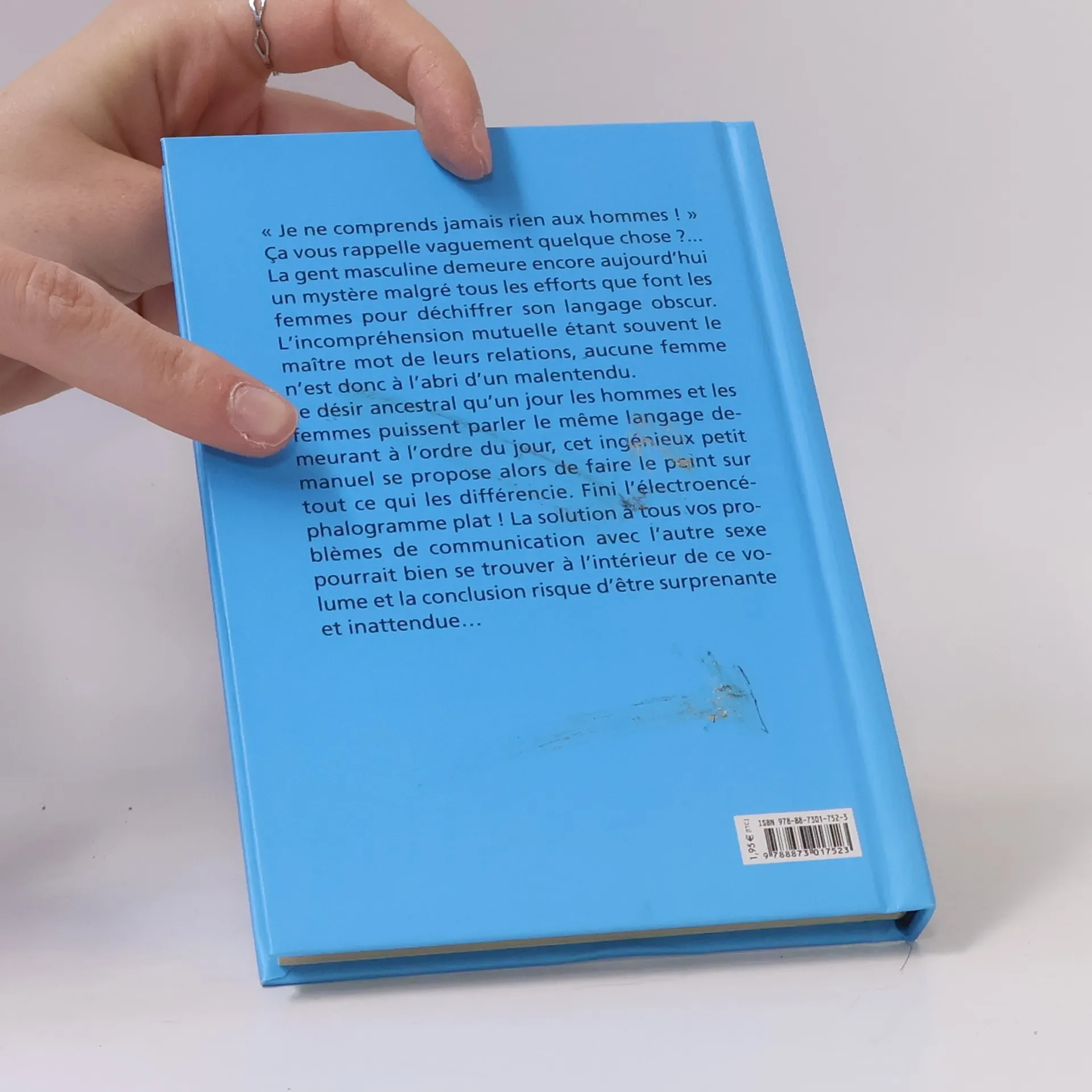 "Je ne comprends jamais rien aux hommes !" Ça vous rappelle vaguement quelque chose ?.. La gent masculine demeure encore aujourd'hui un mystère malgré tous les efforts que font les femmes pour déchiffrer son langage obscur. L'incompréhension mutuelle étant souvent le maître mot de leurs relations, aucune femme n'est donc à l'abri d'un malentendu. Le désir ancestral qu'un jour les hommes et les femmes puissent parler le même langage demeurant à l'ordre du jour, cet ingénieux petit manuel se propose alors de faire le point sur tout ce qui les différencie. Fini l'électroencéphalogramme plat ! La solution à tous vos problèmes de communication avec l'autre sexe pourrait bien se trouver à l'intérieur de ce volume et la conclusion risque d'être surprenante et inattendue...