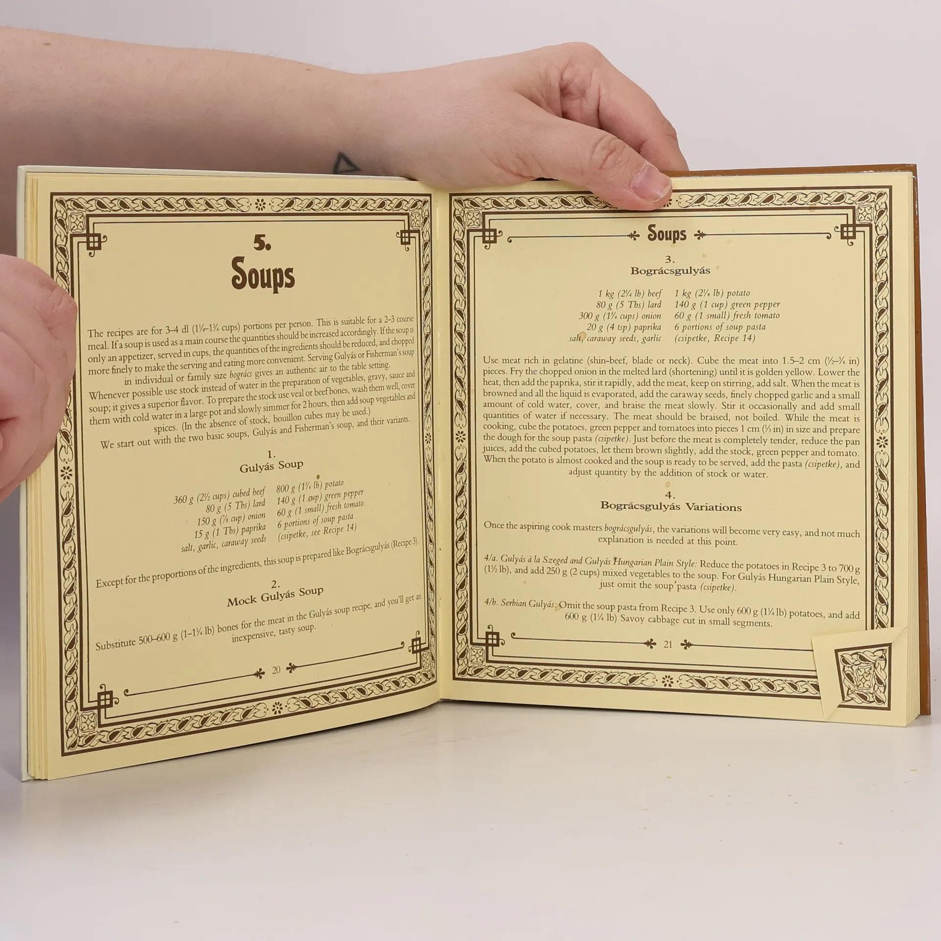 This is an old, tried, & true HUNGARIAN cookbook 1st published in 1934. All ingredients listed in order they should be used, as well as one step after the other. Recipes are for six people...for soups, hot & cold apetizers, meats, salads, & deserts.