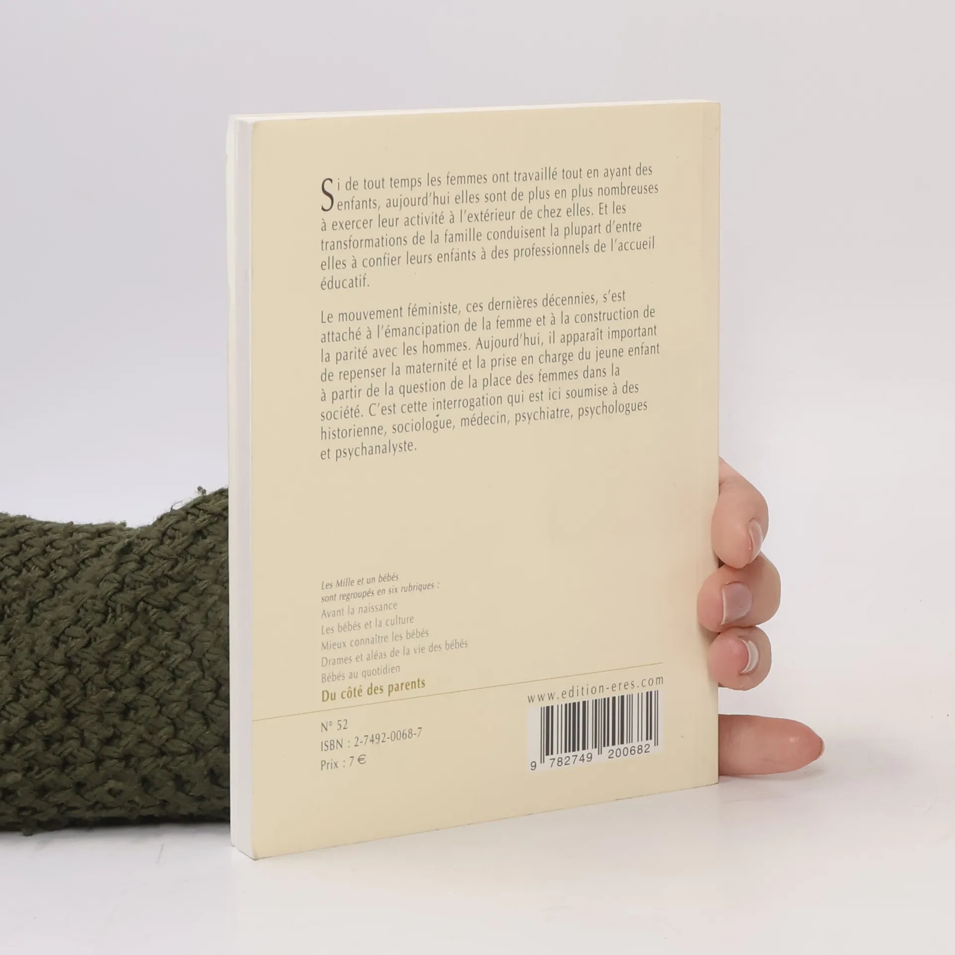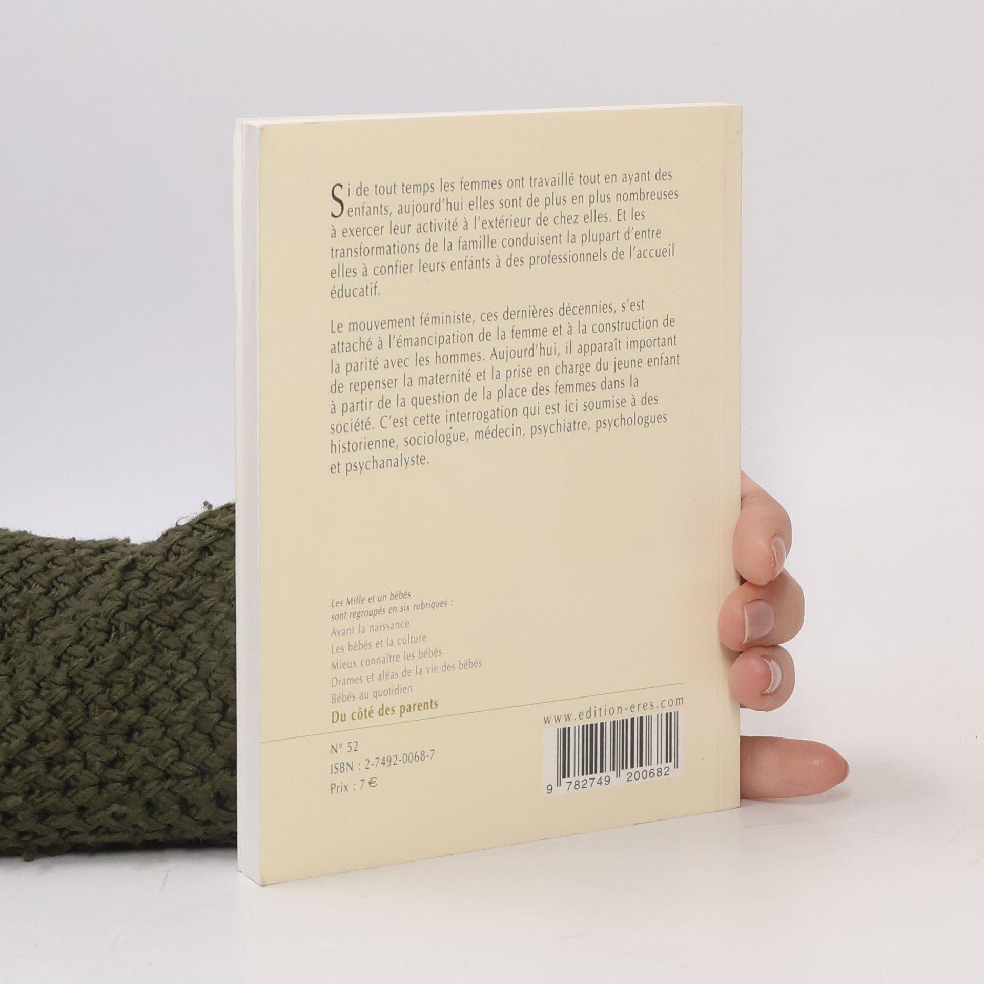 Si de tout temps les femmes ont travaillé tout en ayant des enfants, aujourd'hui elles sont de plus en plus nombreuses à exercer leur activité à l'extérieur de chez elles. Et les transformations de la famille conduisent la plupart d'entre elles à confier leurs enfants à des professionnels de l'accueil éducatif. Le mouvement féministe, ces dernières décennies, s'est attaché à l'émancipation de la femme et à la construction de la parité avec les hommes. Aujourd'hui, il apparaît important de repenser la maternité et la prise en charge du jeune enfant à partir de la question de la place des femmes dans la société. C'est cette interrogation qui est ici soumise à des historienne, sociologue, médecin, psychiatre, psychologues et psychanalyste.