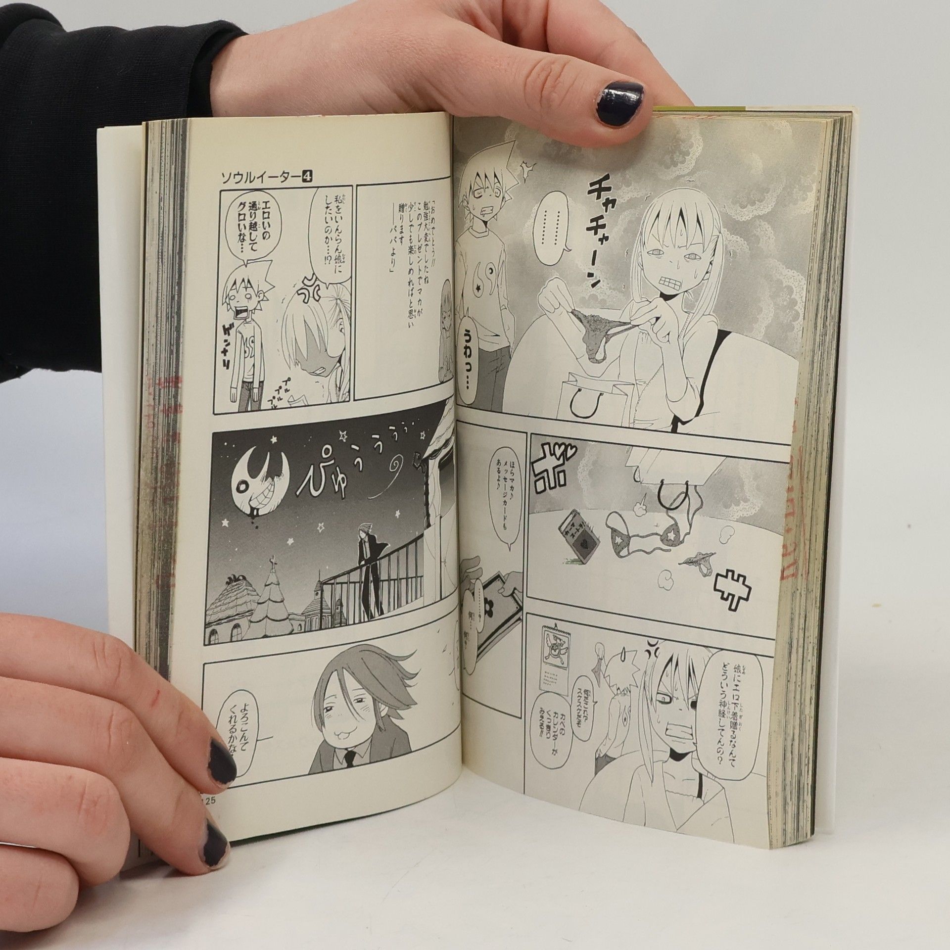 「死武専」は何か隠している…。魔眼の男フリーの恐るべき属性とは!? ソウルの体内に宿った「黒血」、その影響でマカとの関係に亀裂が──!! 死神キッドVS.魔剣、幽霊船を舞台にした戦いの行方は!?激烈激闘の第4巻!!