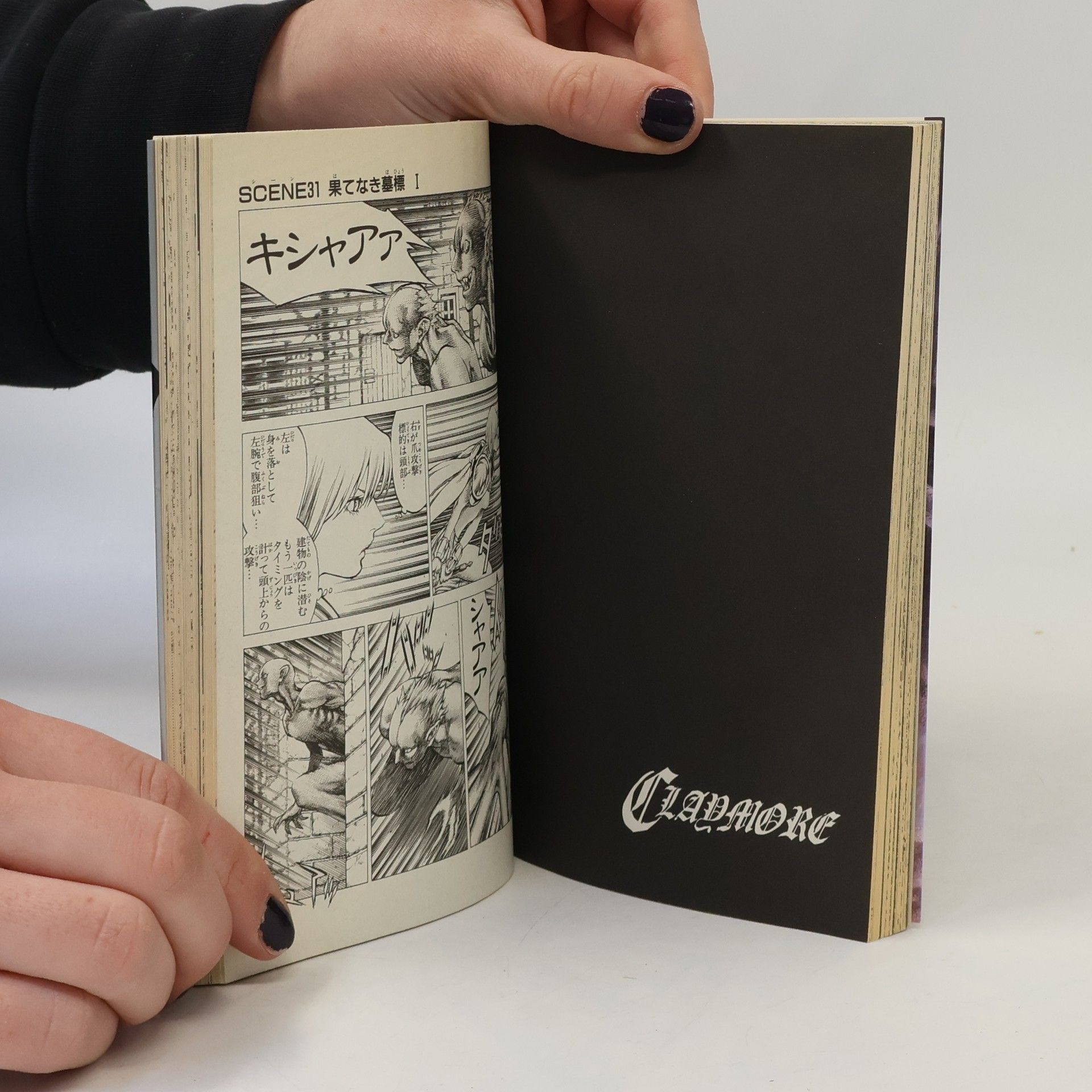 Clare participated in an Awakened Being hunt with fellow Claymores Miria, Deneve, and Helen. However, the Awakened Being is male, a throwback to the times when there were male Claymores, and despite Deneve and Helen displaying extraordinary abilities, they are easily defeated. Even Miria, demonstrating her unnatural speed, is unable to defeat the Awakened Being. In response, Clare attacks him, and using her yōki-reading abilities, is unharmed. Clare and Miria ultimately slay the Awakened Being. During this time, Ermita, a member of the Organization, had been viewing the battle with the aid of #3 Galatea.