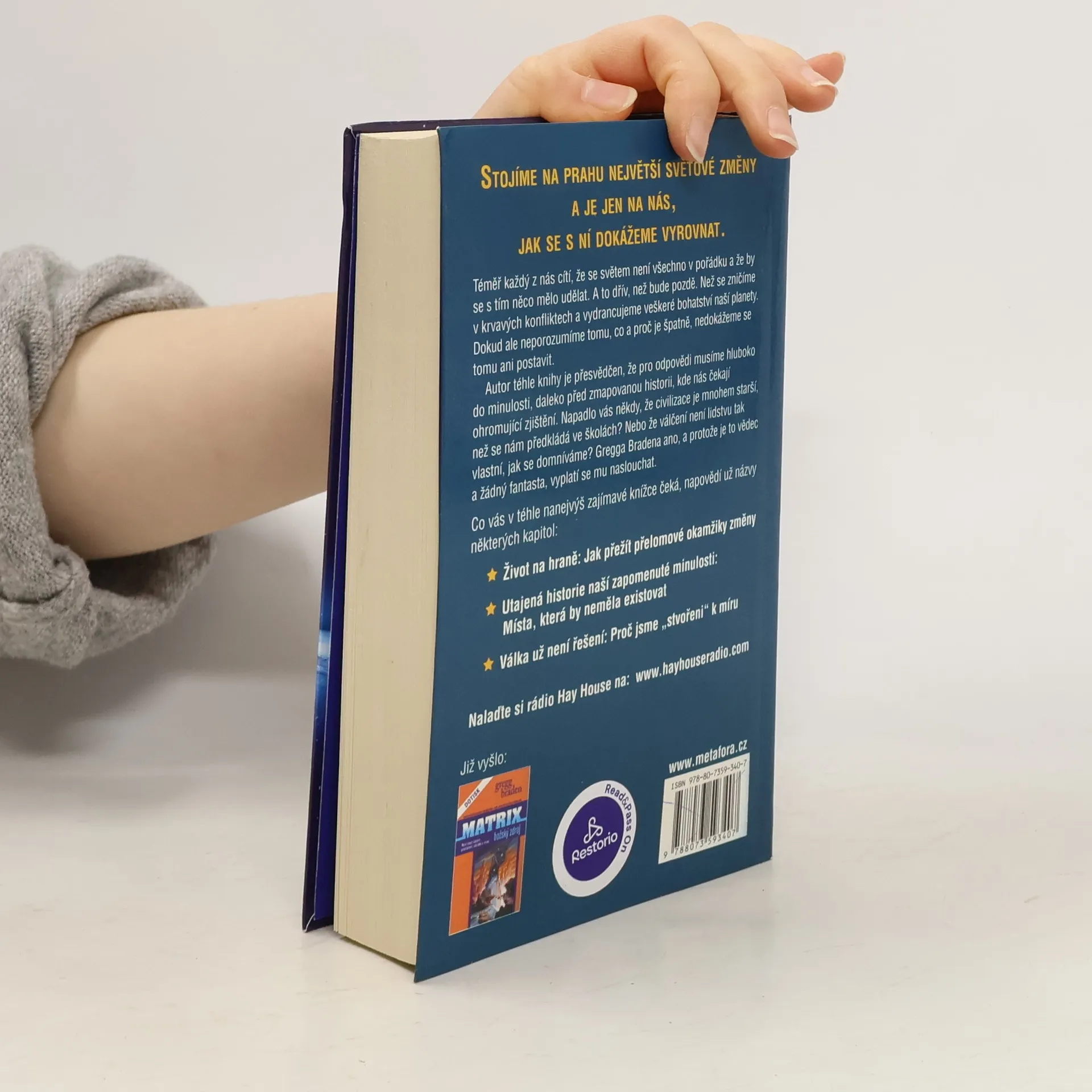 Téměř každý z nás cítí, že se světem není všechno v pořádku a že by se s tím něco mělo udělat. A to dřív, než se zničíme v krvavých konfliktech a vydrancujeme veškeré bohatství naší planety. Dokud ale neporozumíme tomu, co a proč je špatně, nedokážeme se tomu ani postavit. Pro odpovědi musíme ovšem hluboko do minulosti, daleko před zmapovanou historii, kde nás čekají ohromující zjištění. Napadlo vás někdy, že civilizace je mnohem starší, než se nám předkládá ve školách? Nebo že válčení není lidstvu tak vlastní, jak se domníváme? Gregga Bradena ano, a protože je to vědec a žádný fantasta, vyplatí se mu naslouchat. Zdá se, že historie se v obrovských cyklech opakuje a že právě teď se ke konci jednoho takového "světového věku" rychle blížíme.