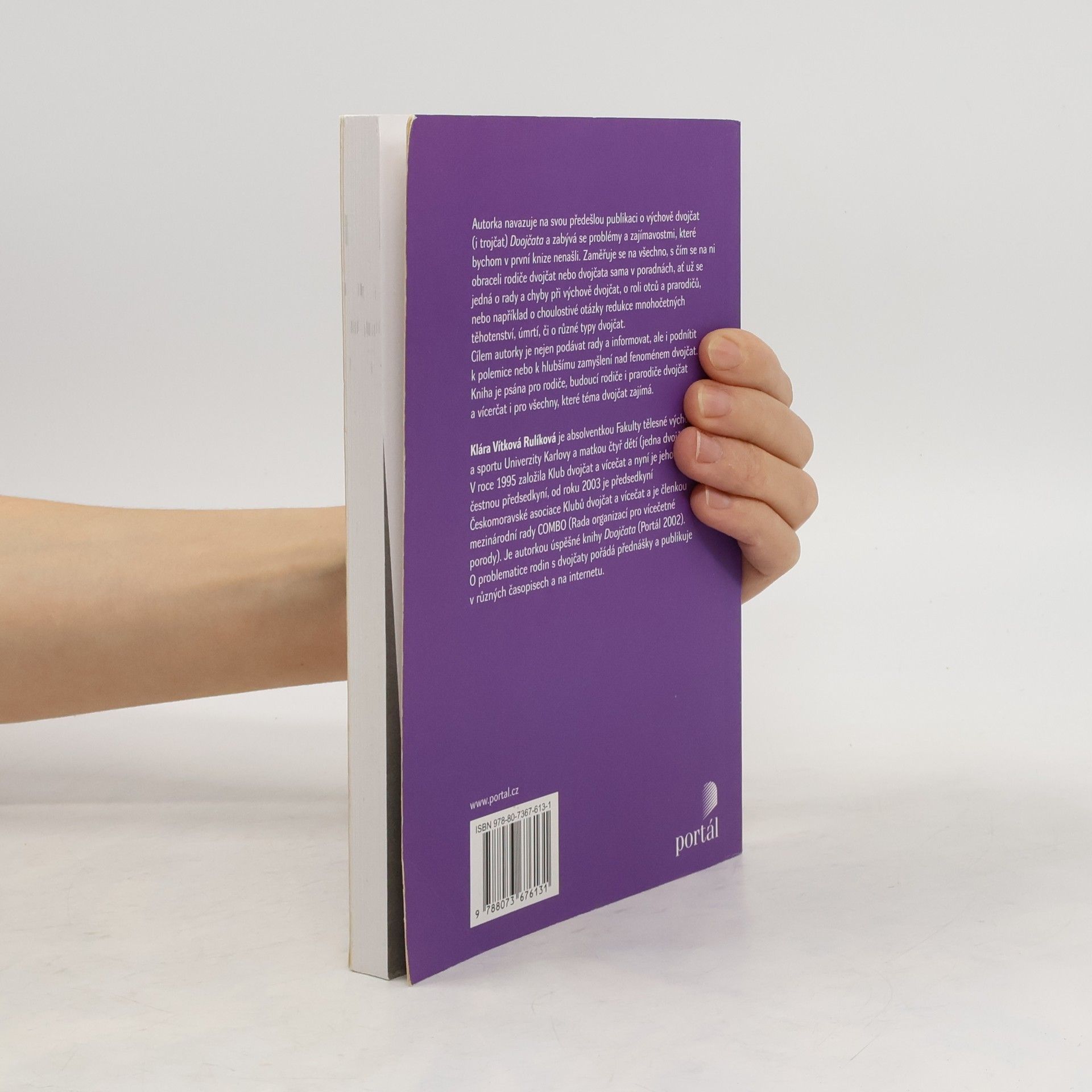 Autorka navazuje na svou předešlou publikaci Dvojčata o vývoji a výchově dvojčat (i trojčat) a zabývá se problémy a zajímavostmi, které v první knize nejsou obsaženy. Zaměřuje se na všechno, s čím se na ni obracela dvojčata nebo jejich rodiče v poradnách, ať už se jedná o rady a chyby při výchově dvojčat, o roli otců a prarodičů, nebo například o choulostivě otázky redukce mnohočetných těhotenství, úmrtí, či o různé typy dvojčat, zvládání puberty u dvojčat a vícerčat apod. Cílem autorky je nejen podávat rady a informovat, ale i podnítit k polemice nebo k hlubšímu zamyšlení nad fenoménem dvojčat. Kniha je psána pro rodiče, budoucí rodiče i prarodiče dvojčat a vícerčat. Klára Vítková Rulíková je absolventkou Fakulty tělesné výchovy a sportu Univerzity Karlovy a matkou čtyř dětí (z toho jedněch dvojčat). V roce 1995 založila Klub dvojčat a vícerčat a je jeho předsedkyní. Je autorkou úspěšné knihy Dvojčata (Portál, 2002). O problematice rodin s dvojčaty pořádá přednášky a publikuje v různých časopisech a na internetu.