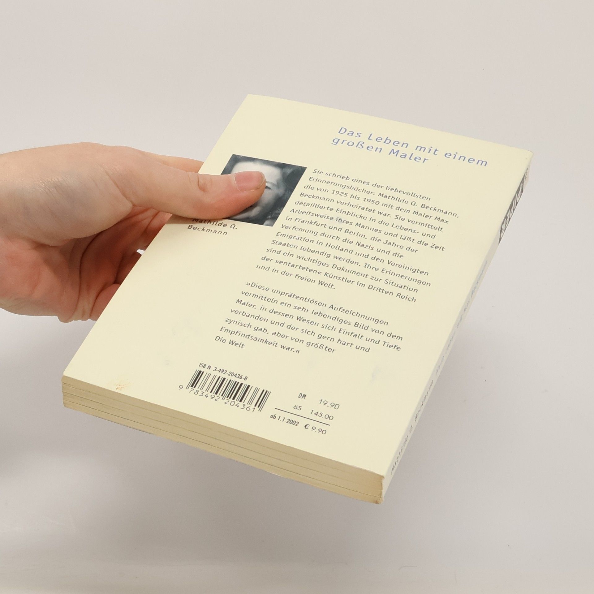 Beckmann, Mathilde Q. Mein Leben mit Max Beckmann. München / Zürich, Piper, 1985. 12,5 x 19cm. 242 Seiten, mit 58 Abbildungen. Originale Broschur. Sehr guter Zustand. [Serie Piper, Band 436]. In dieser so liebevollen wie genau informierenden Darstellung schildert Mathilde Q. Beckmann ihren Mann als einen Menschen, der weder im Leben noch in der Kunst Kompromisse kannte, sie setzt damit ihm und auch Freuden in Deutschland, in Holland und in den USA ein Denkmal. Ein umfangreicher Bildteil überwiegend unveröffentlicher Photographien aus dem Privatbesitz der Autorin und aus Archiven veranschaulicht diese Erinnerungen und vergrößert den zeitgeschichtlichen Wert dieses Buches. [Piper]