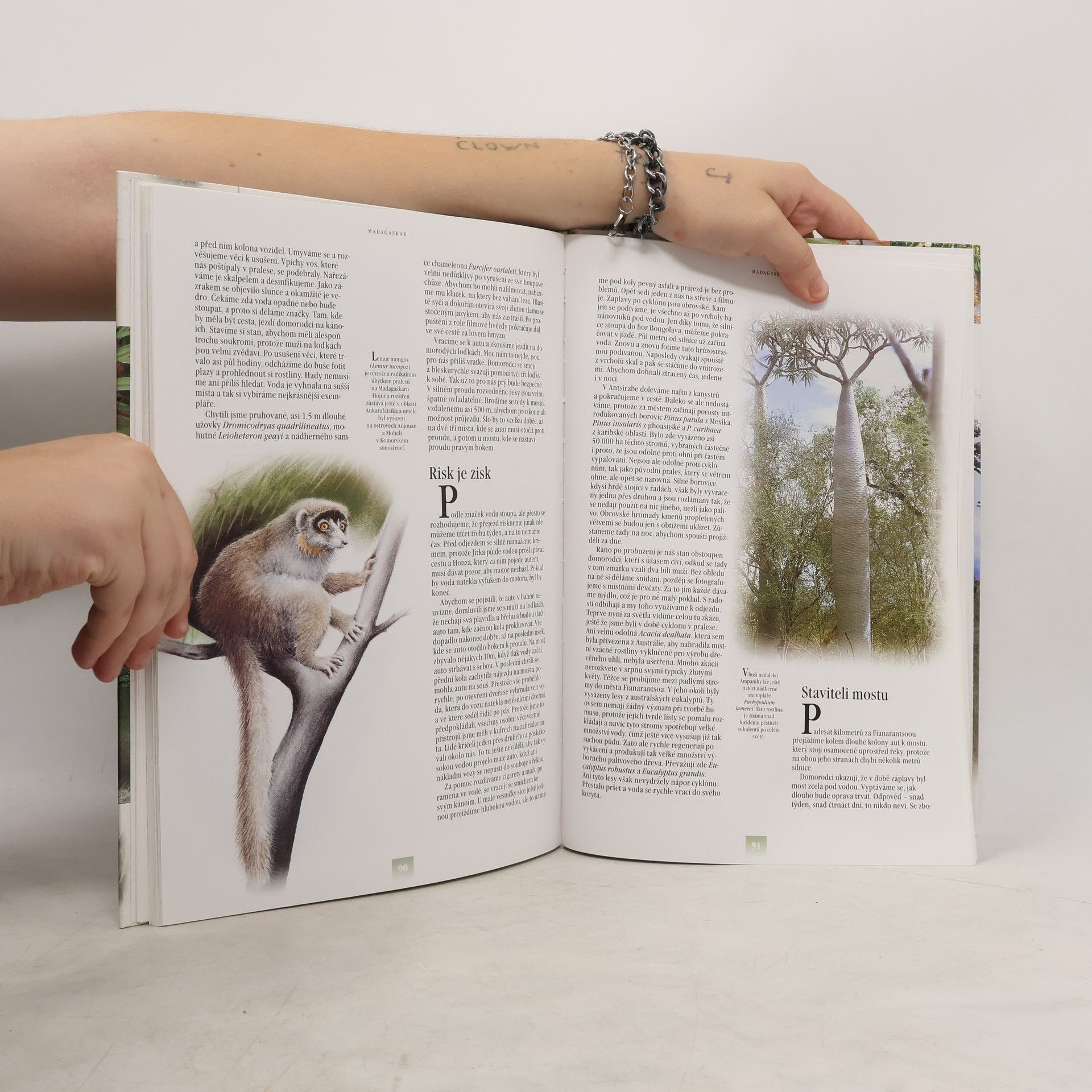 S autory se vydáme napříč Madagaskarem, tištěno na křídovém papíře, doplněno ilustracemi a fotografiemi. Madagaskar láká v posledních letech stále více cestovatelů a dobrodruhů. Je to ostrov kouzelný a tajuplný, jehož příroda se po milióny let vyvíjela zcela izolovaně od ostatního světa. Vznikla tak unikátní flóra a fauna, jejíž značná část není dosud vědecky prozkoumána. Přestože člověk vstoupil na Madagaskar relativně nedávno, stačil za tu dobu napáchat nenapravitelné škody.