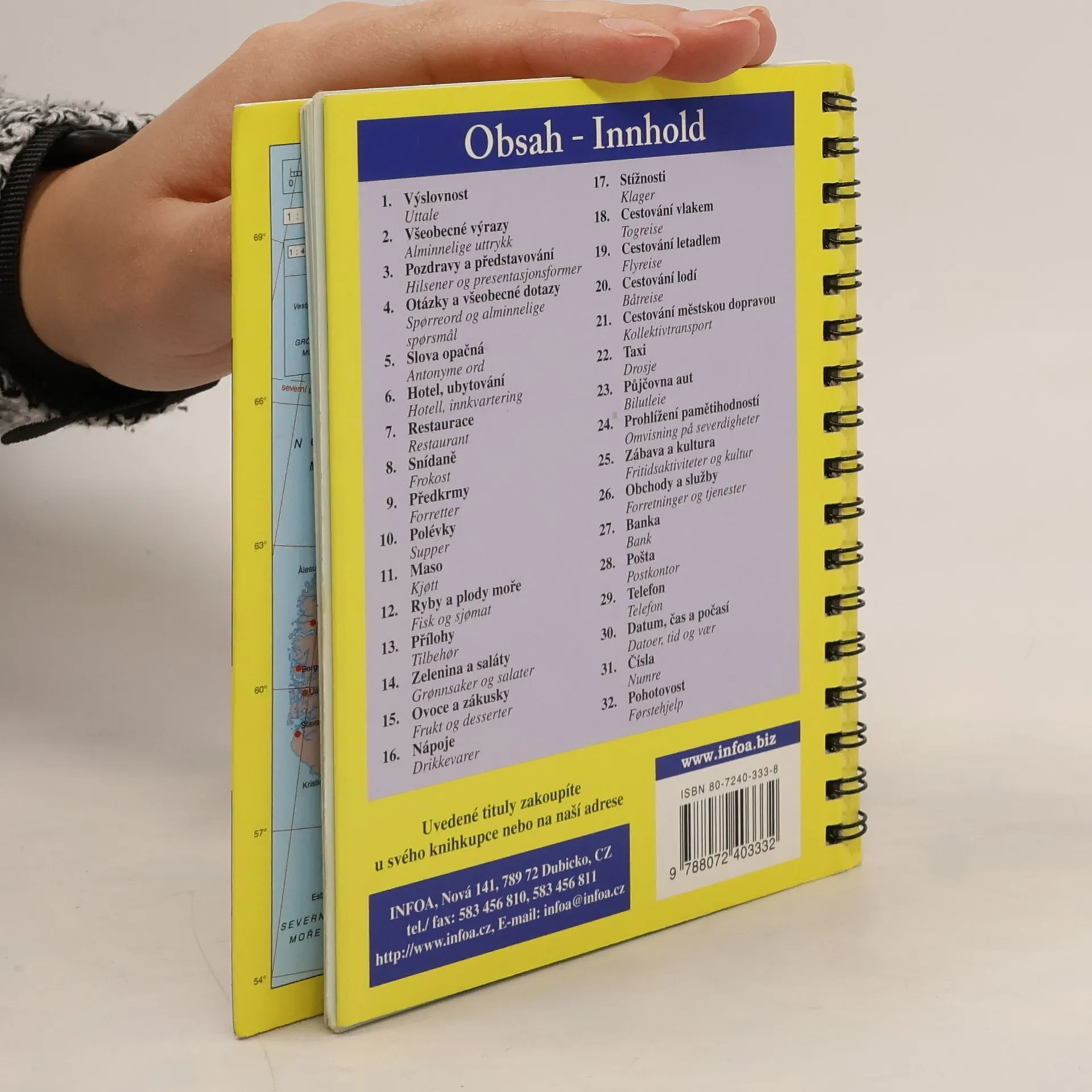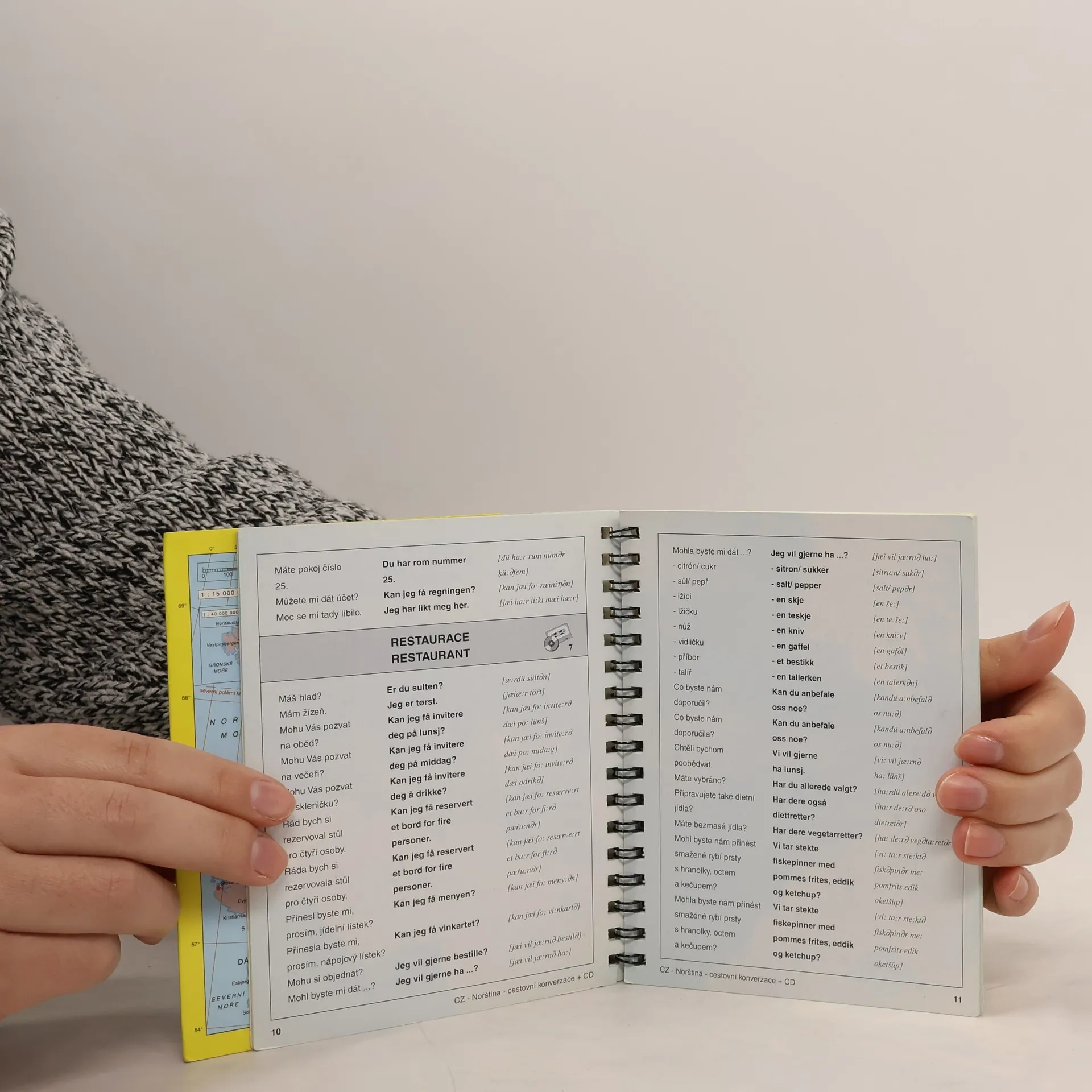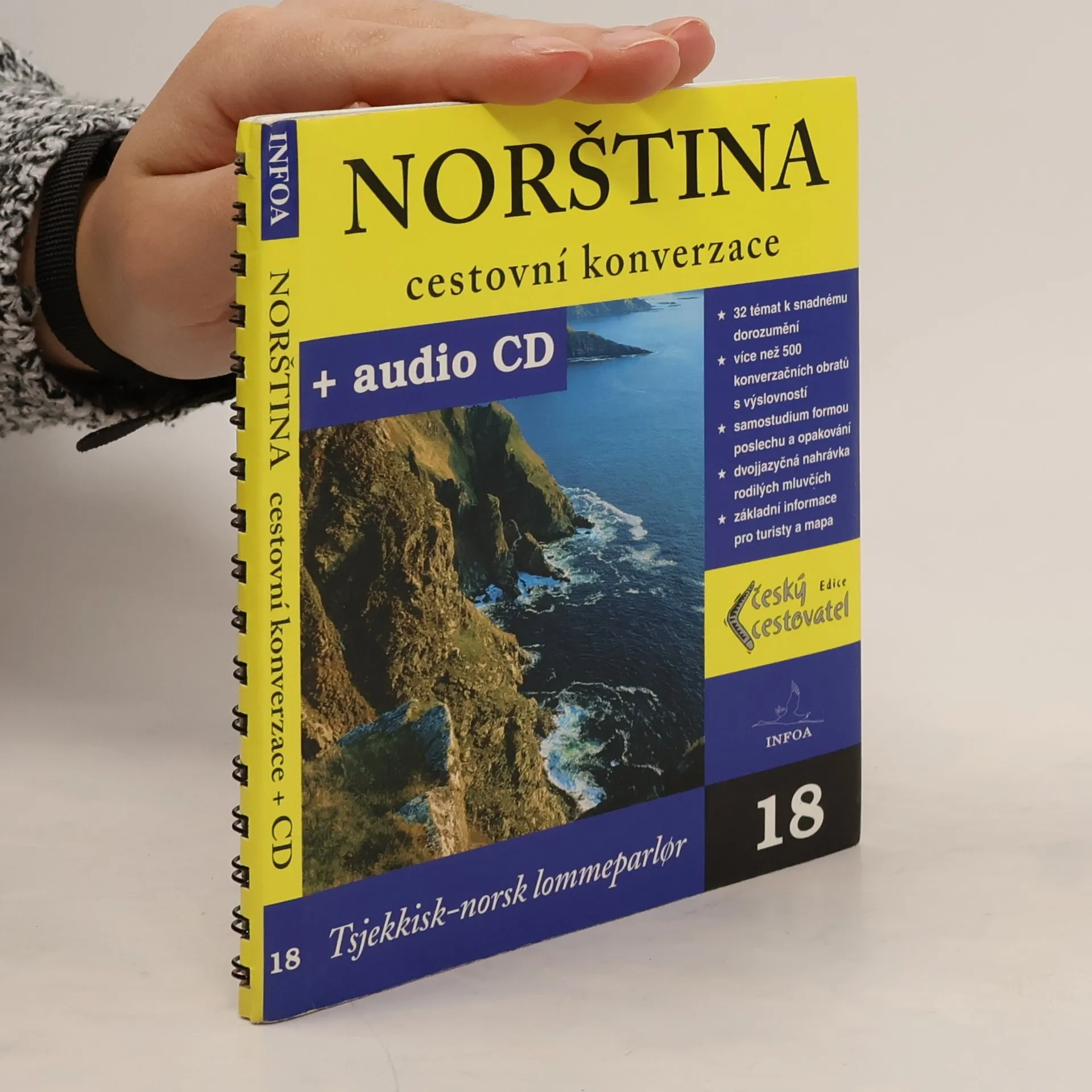 18. díl z jedinečné řady 24 audio konverzací, sloužící jako vynikající pomůcka pro turisty i profesionální pracovníky. Obsahuje 32 témat k snadnému dorozumnění, více než 500 konverzačních obratů s výslovností, samostudium formou poslechu a opakování. Dále dvojjazyčnou nahrávku rodilých mluvčích, základní informace pro turisty a mapu. (cestovní konverzace = tsjekkisk-norsk lommeparlr)