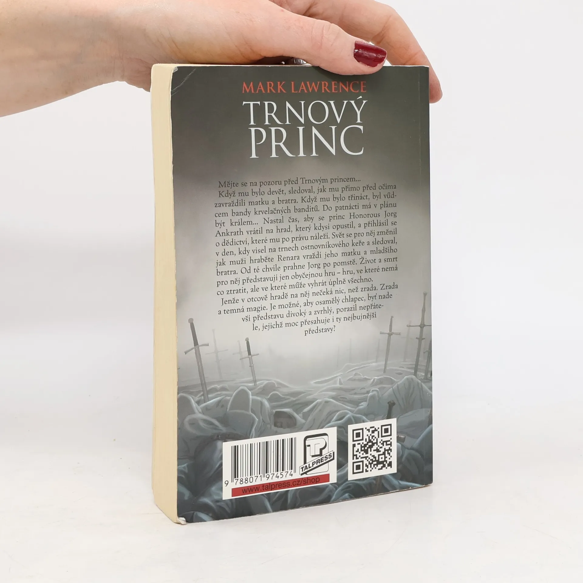 Mějte se na pozoru před Trnovým princem... Když mu bylo devět, sledoval, jak mu přímo před očima zavraždili matku a bratra. Když mu bylo třináct, byl vůdcem bandy krvelačných banditů. Do patnácti má v plánu být králem... Nastal čas, aby se princ Honorous Jorg Ankrath vrátil na hrad, který kdysi opustil, a přihlásil se o dědictví, které mu po právu náleží. Svět se pro něj změnil v den, kdy visel na trnech ostnovníkového keře a sledoval, jak muži hraběte Renara vraždí jeho matku a mladšího bratra. Od té chvíle prahne Jorg po pomstě. Život a smrt pro něj představují jen obyčejnou hru - hru, ve které nemá co ztratit, ale ve které může vyhrát úplně všechno. Jenže v otcově hradě na něj nečeká nic, než zrada. Zrada a temná magie. Je možné, aby osamělý chlapec, byť nade vší představu divoký a zvrhlý, porazil nepřátele, jejichž moc přesahuje i ty nejbujnější představy?