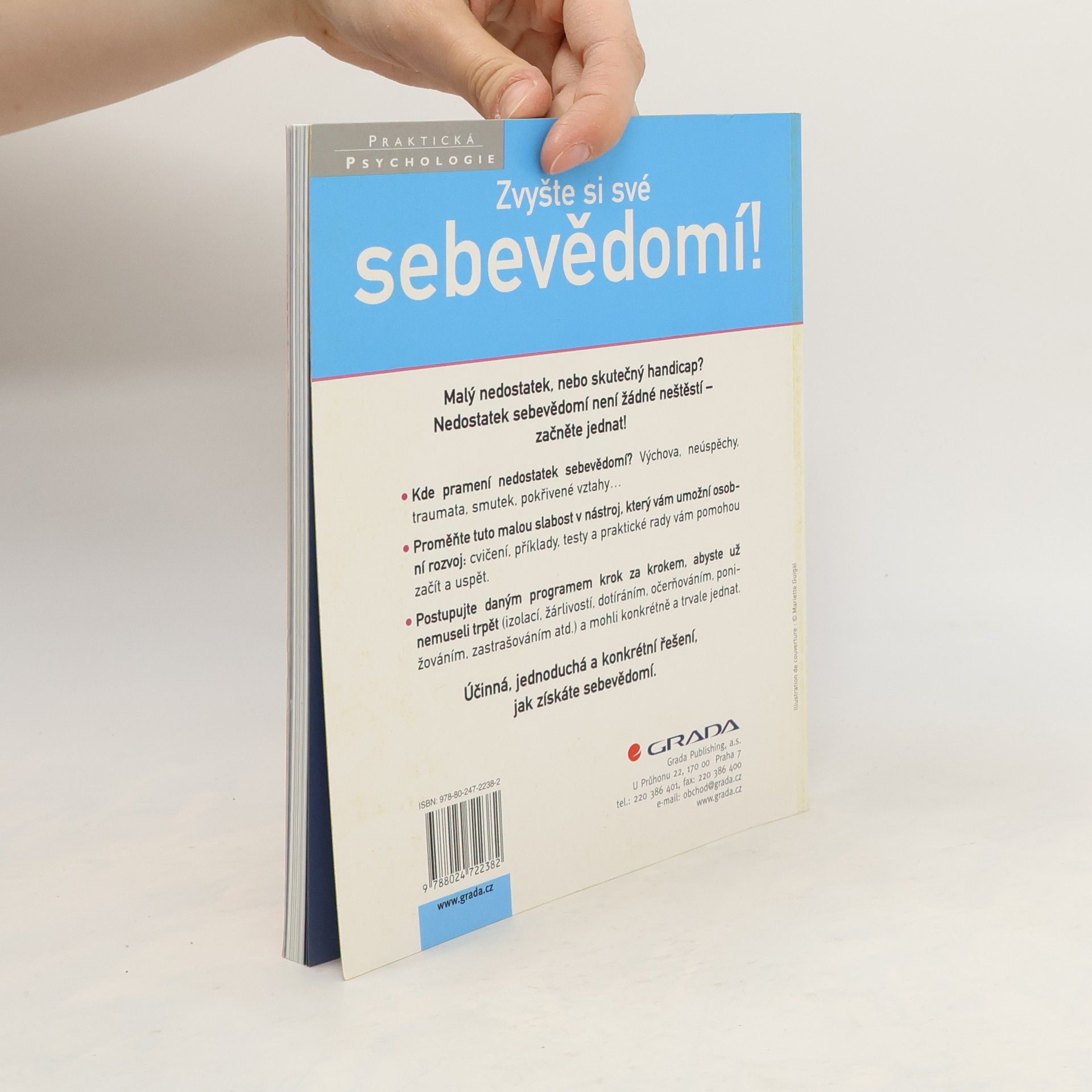 Nedostatek sebevědomí není nemoc, ale problém, který se ve skutečném životě může změnit ve skutečný handicap - a to v životě jak soukromém, tak pracovním. Je to něco, co mohou ovlivnit všichni - rodina, přátelé, známí všech věkových kategorií. Přinášíme vám „step by step“ program, praktická cvičení, dotazníky, podrobnosti, anekdoty, díky kterým dosáhnete svého cíle - sebevědomí. Tato kniha se od podobných odlišuje přístupem - uvědomění si sebe sama a svých slabých stránek. Text knihy je přehledně členěn a najdete v něm i texty, cvičení, rámečky a přehledy.