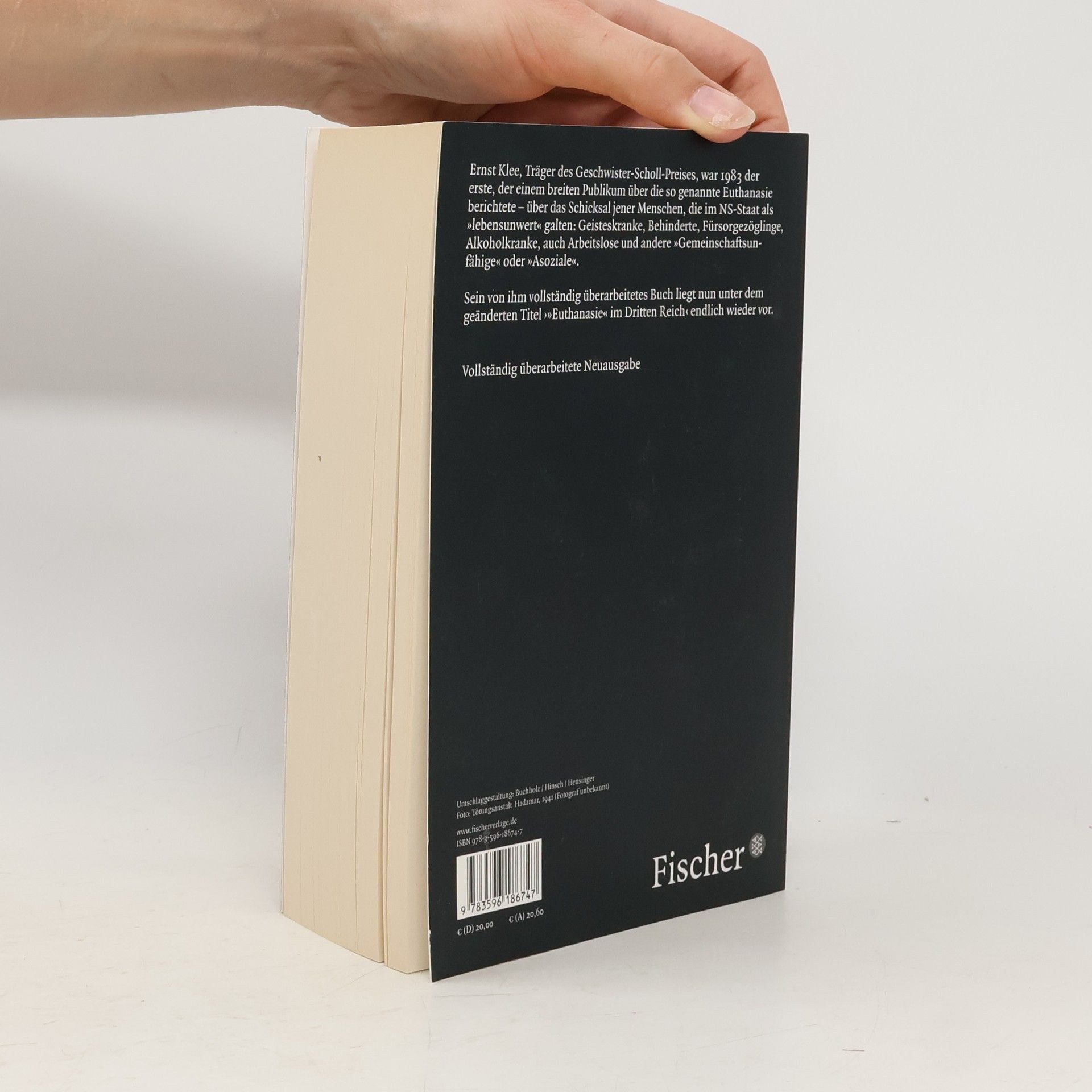 Das Standardwerk zur NS-Euthanasie, basierend auf jahrzehntelanger Arbeit in Archivbeständen des In- und Auslandes. In der 2010 von Ernst Klee komplett überarbeiteten, gestrafften und zugleich erweiterten Fassung, sind alle zuvor anonymisierten Namen dechiffriert. Klee konnte nachweisen, dass die mörderischen Gaswagen bereits ab Herbst 1939 systematisch zum Krankenmord im Einsatz waren. Er schildert außerdem die psychiatrische »Entsorgung« von SS-Leuten, die während des Massenmords durchdrehten. Zu den Mordkomplizen und Nutznießern des Massenmords gehörte auch die Wehrmacht. Sie überantwortete kranke Soldaten skrupellos den Mördern in psychiatrischen Anstalten. Das Buch wird abgerundet mit Kurzbiographien der Täter und ihrer zahlreichen Helfershelfer und gibt überdies Auskunft über den Verbleib jener Euthanasiespezialisten, die in die Vernichtungslager Belzec, Sobibor und Treblinka wechselten. »Ein engagierter Publizist, der sich nie gescheut hat, Tabuthemen aufzugreifen.« Die Jury zur Verleihung des Geschwister-Scholl-Preises 1997 an Ernst Klee