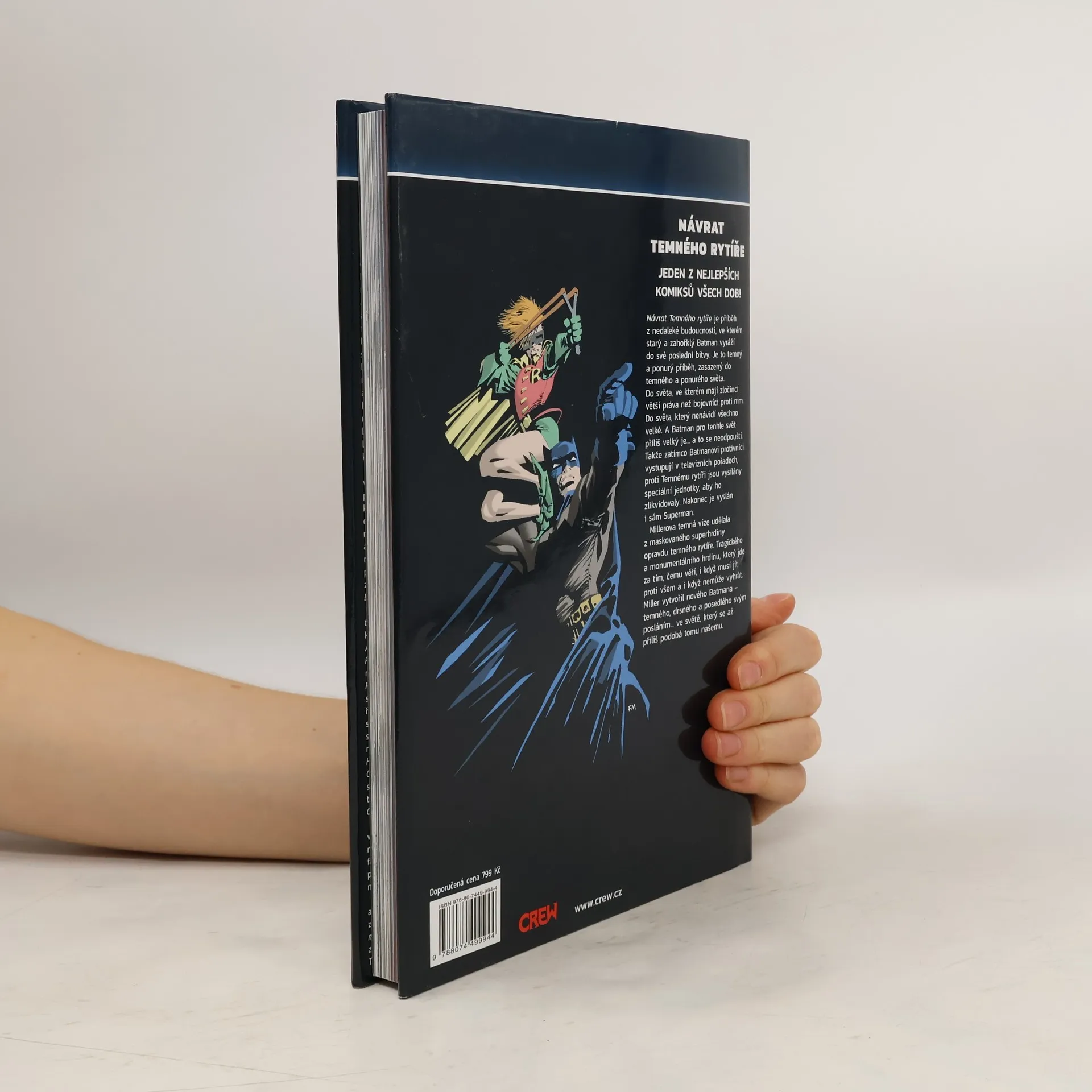 NÁVRAT TEMNÉHO RYTÍŘE – JEDEN Z NEJLEPŠÍCH KOMIKSŮ VŠECH DOB! Návrat Temného rytíře je příběh z nedaleké budoucnosti, ve kterém starý a zahořklý Batman vyráží do své poslední bitvy. Je to temný a ponurý příběh, zasazený do temného a ponurého světa. Do světa, ve kterém mají zločinci větší práva než bojovníci proti nim. Do světa, který nenávidí všechno velké. A Batman pro tenhle svět příliš velký je… a to se neodpouští. Takže zatímco Batmanovi protivníci vystupují v televizních pořadech, proti Temnému rytíři jsou vysílány speciální jednotky, aby ho zlikvidovaly. Nakonec je vyslán i sám Superman. Millerova temná vize udělala z maskovaného superhrdiny opravdu temného rytíře. Tragického a monumentálního hrdinu, který jde za tím, čemu věří, i když musí jít proti všem a i když nemůže vyhrát. Miller vytvořil nového Batmana – temného, drsného a posedlého svým posláním... ve světě, který se až příliš podobá tomu našemu.