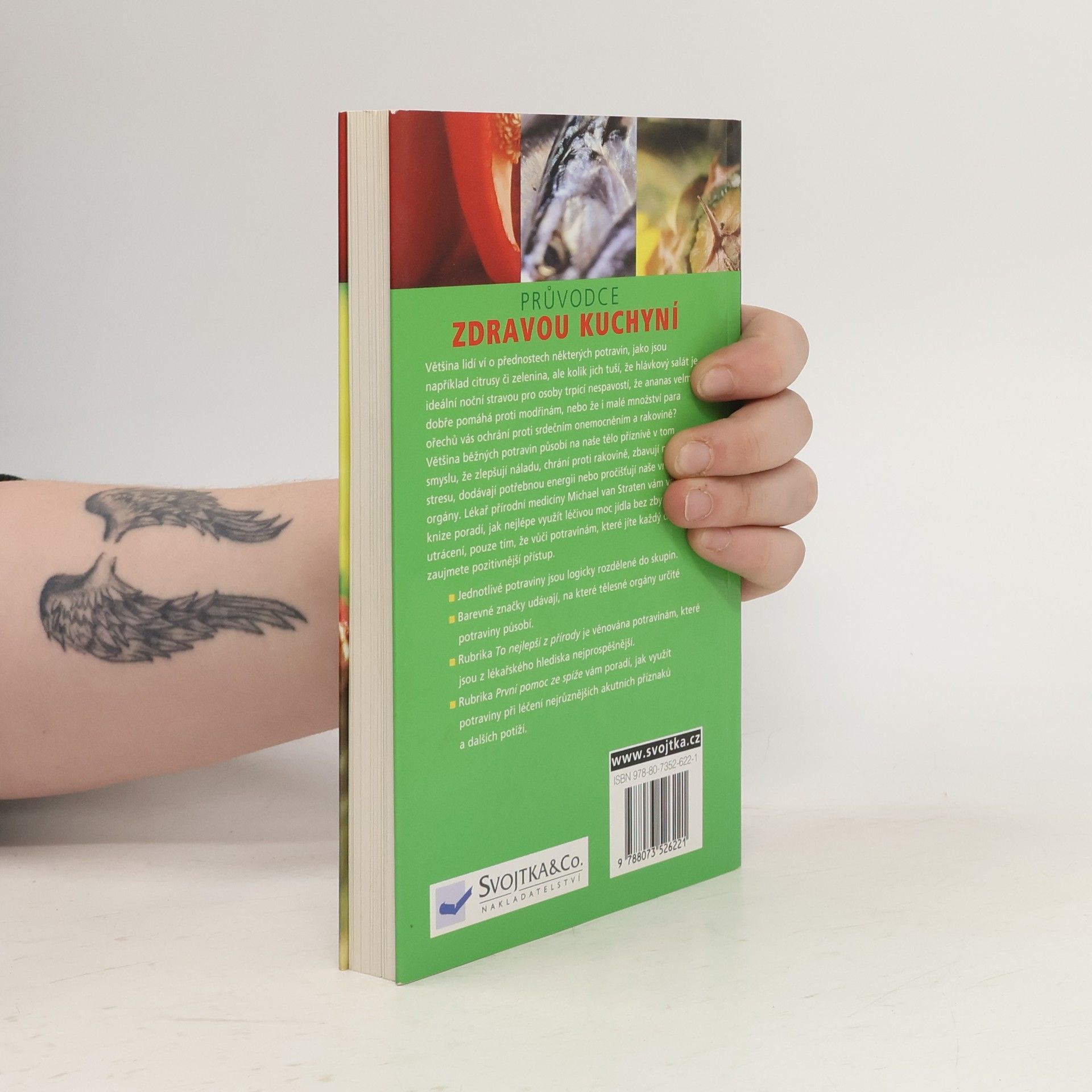 Většina lidí ví o přednostech některých potravin, jako jsou například citrusy či zelenina, ale kolik jich tuší, že hlávkový salát je ideální noční stravou pro osoby trpící nespavostí, že ananas velmi dobře pomáhá proti modřinám, nebo že i malé množství para ořechů vás ochrání proti srdečním onemocněním a rakovině? Většina běžných potravin působí na naše tělo příznivě v tom smyslu, že zlepšují náladu, chrání proti rakovině, zbavují nás stresu, dodávají potřebnou energii nebo pročišťují naše vnitřní orgány. Lékař přírodní medicíny Michael van Straten vám ve své knize poradí, jak nejlépe využít léčivou moc jídla bez zbytečného utrácení, pouze tím, že vůči potravinám, které jíte každý den, zaujmete pozitivnější přístup. . Jednotlivé potraviny jsou logicky rozdělené do skupin. . Barevné značky udávají, na které tělesné orgány určité potraviny působí. . Rubrika To nejlepší z přírody je věnována potravinám, které jsou z lékařského hlediska nejprospěšnější. . Rubrika První pomoc ze spíže vám poradí, jak využít potraviny při léčení nejrůznějších akutních příznaků a dalších potíží.