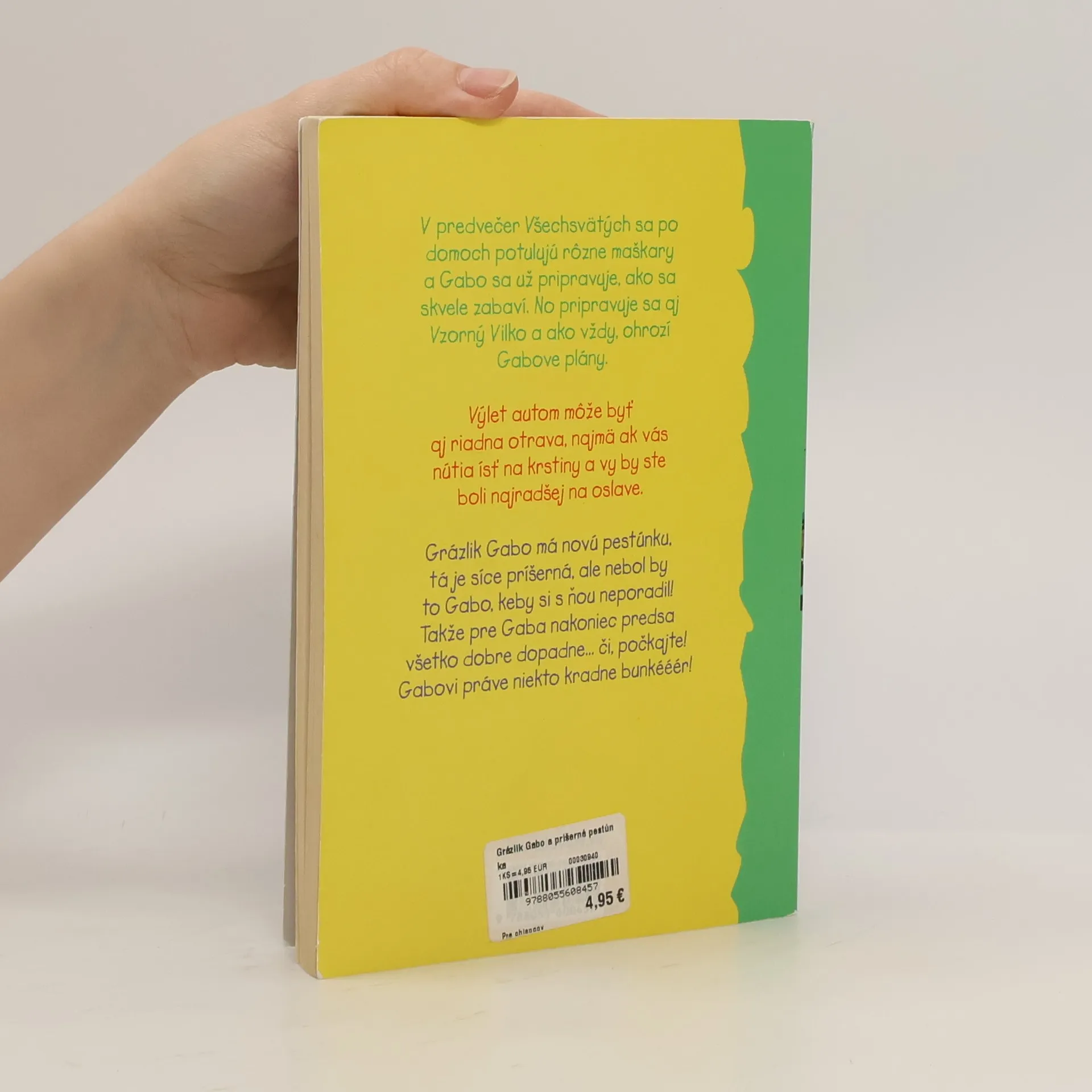 V týchto štyroch príbehoch o Grázlikovi Gabovi s ním pocestujeme za jeho sesternicou – v aute a proti Gabovej vôli! Dozvieme sa, že zákaz vychádzok v predvečer Všechsvätých je vlastne celkom dobrý nápad a ako Gabo pomôže Vzornému Vilkovi. Okrem toho sa ešte dočítame, aké ťažké je postrážiť Grázlika Gaba a čoho sa bojí príšerná pestúnka. Ak si Náladová Naďa myslí, že beztrestne ukradne vlajku Gabovho tajného spolku, tak sa veľmi mýli.