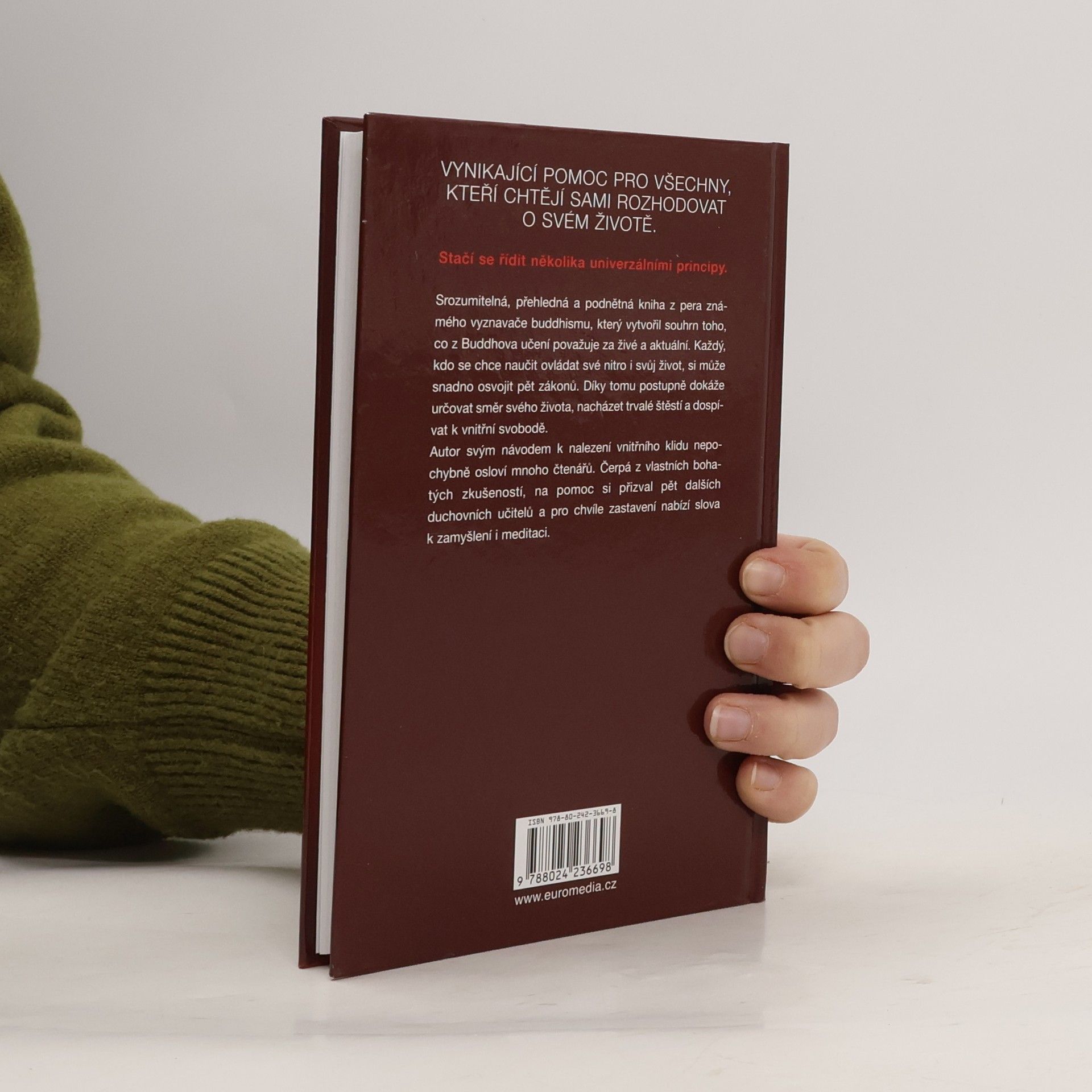 Srozumitelná, přehledná a podnětná kniha z pera známého vyznavače buddhismu, který vytvořil souhrn toho, co z Buddhova učení považuje za živé a aktuální. Každý, kdo se chce naučit ovládat své nitro i svůj život, si může snadno osvojit pět zákonů. Díky tomu postupně dokáže určovat směr svého života, nacházet trvalé štěstí a dospívat k vnitřní svobodě. Autor svým návodem k nalezení vnitřního klidu nepochybně osloví mnoho čtenářů; navíc čerpá ze svých bohatých zkušeností, na pomoc si přizval pět dalších duchovních učitelů a pro chvíle zastavení nabízí slova k zamyšlení i meditaci.