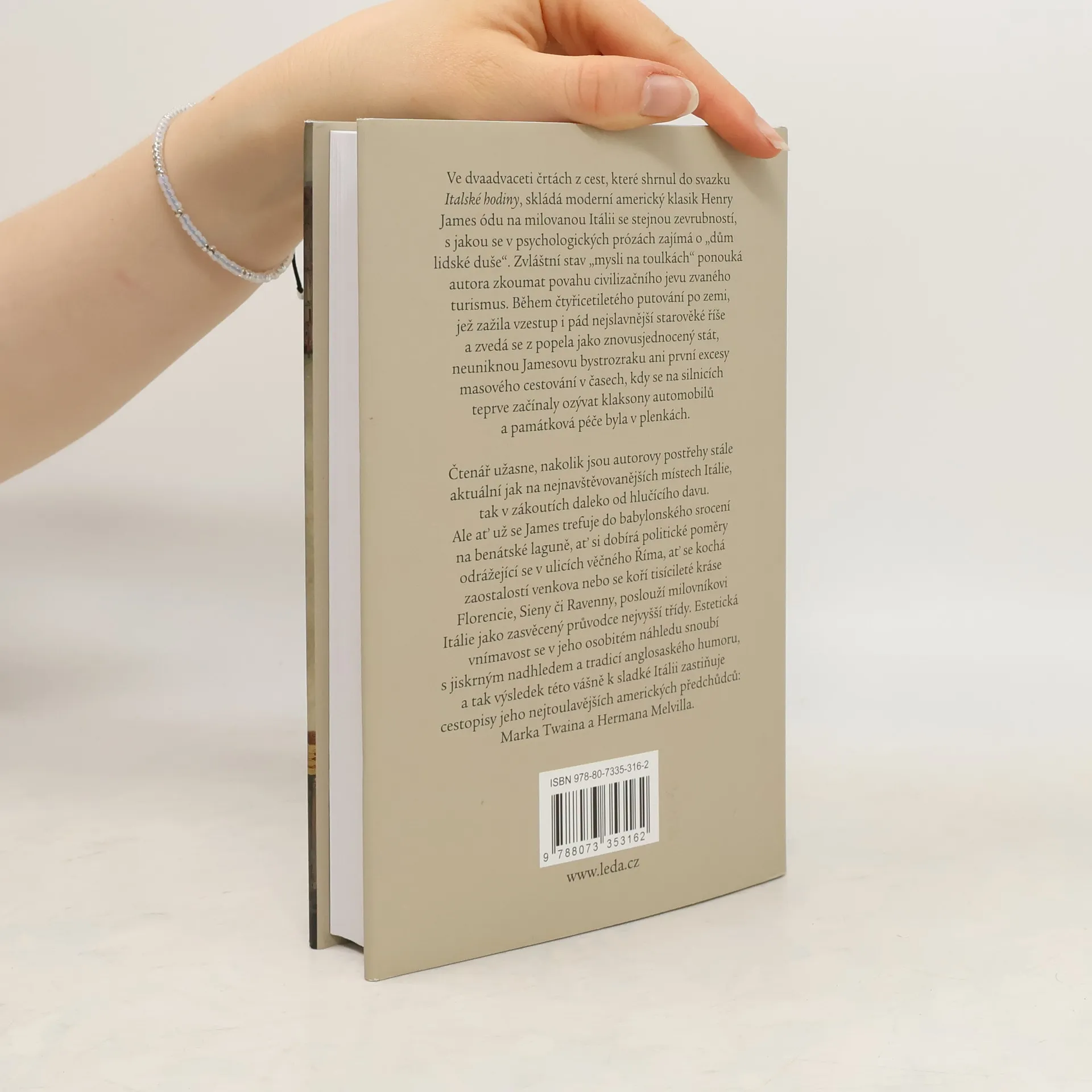 Ve dvaadvaceti črtách z cest, které shrnul do svazku Italské hodiny, skládá moderní americký klasik Henry James ódu na milovanou Itálii se stejnou zevrubností, s jakou se v psychologických prózách zajímá o „dům lidské duše“. Zvláštní stav „mysli na toulkách“ ponouká autora zkoumat povahu civilizačního jevu zvaného turismus. Během čtyřicetiletého putování po zemi, jež zažila vzestup i pád nejslavnější starověké říše a zvedá se z popela jako znovusjednocený stát, neuniknou Jamesovu bystrozraku ani první excesy masového cestování v časech, kdy se na silnicích teprve začínaly ozývat klaksony automobilů a památková péče byla v plenkách. Čtenář užasne, nakolik jsou autorovy postřehy stále aktuální jak na nejnavštěvovanějších místech Itálie, tak v zákoutích daleko od hlučícího davu. Ale ať už se James trefuje do babylonského srocení na benátské laguně, ať si dobírá politické poměry odrážející se v ulicích věčného Říma, ať se kochá zaostalostí venkova nebo se koří tisícileté kráse Florencie, Sieny či Ravenny, poslouží milovníkovi Itálie jako zasvěcený průvodce nejvyšší třídy. Estetická vnímavost se v jeho osobitém náhledu snoubí s jiskrným nadhledem a tradicí anglosaského humoru, a tak výsledek této vášně k sladké Itálii zastiňuje cestopisy jeho nejtoulavějších amerických předchůdců: Marka Twaina a Hermana Melvilla.