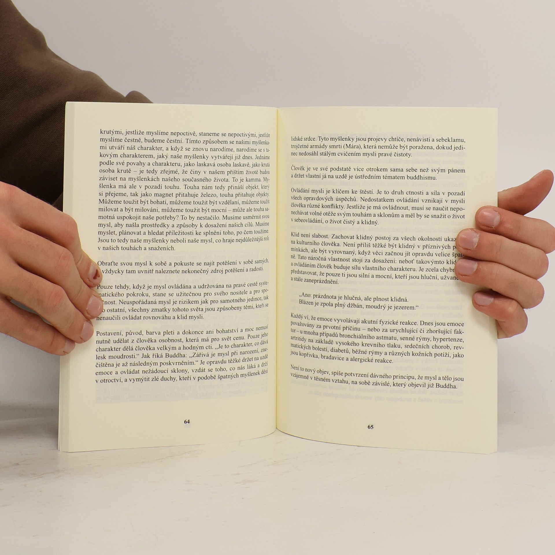 Cesta k duševní vyrovnanosti, klidu a štěstí. Své starosti si vyrábíme sami. Vytváříme je ve svých myslích, vinou vlastní neschopnosti pochopit a plně vyhodnotit svoje sobecké pocity a uměle zveličenou a falešnou hodnotou věcí.