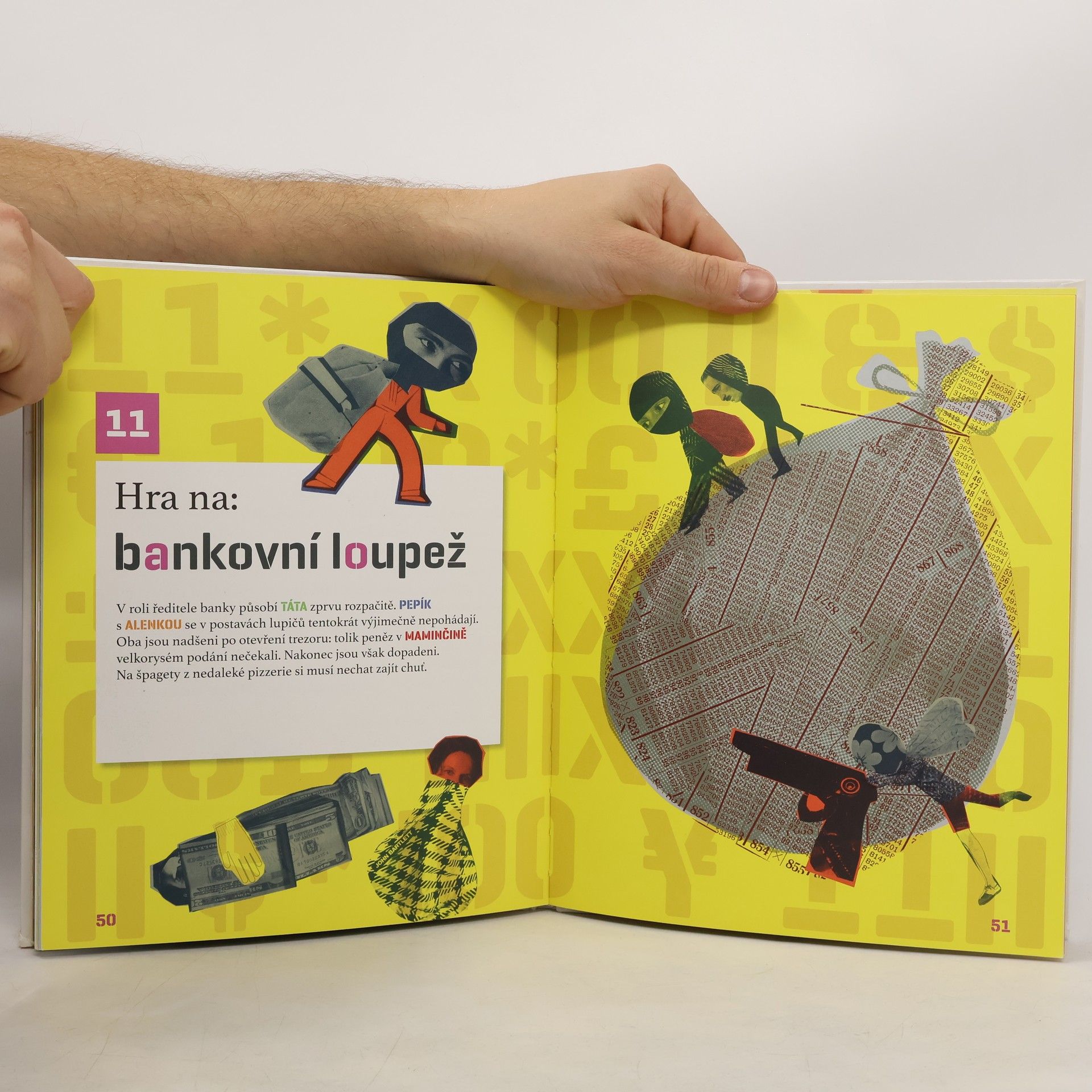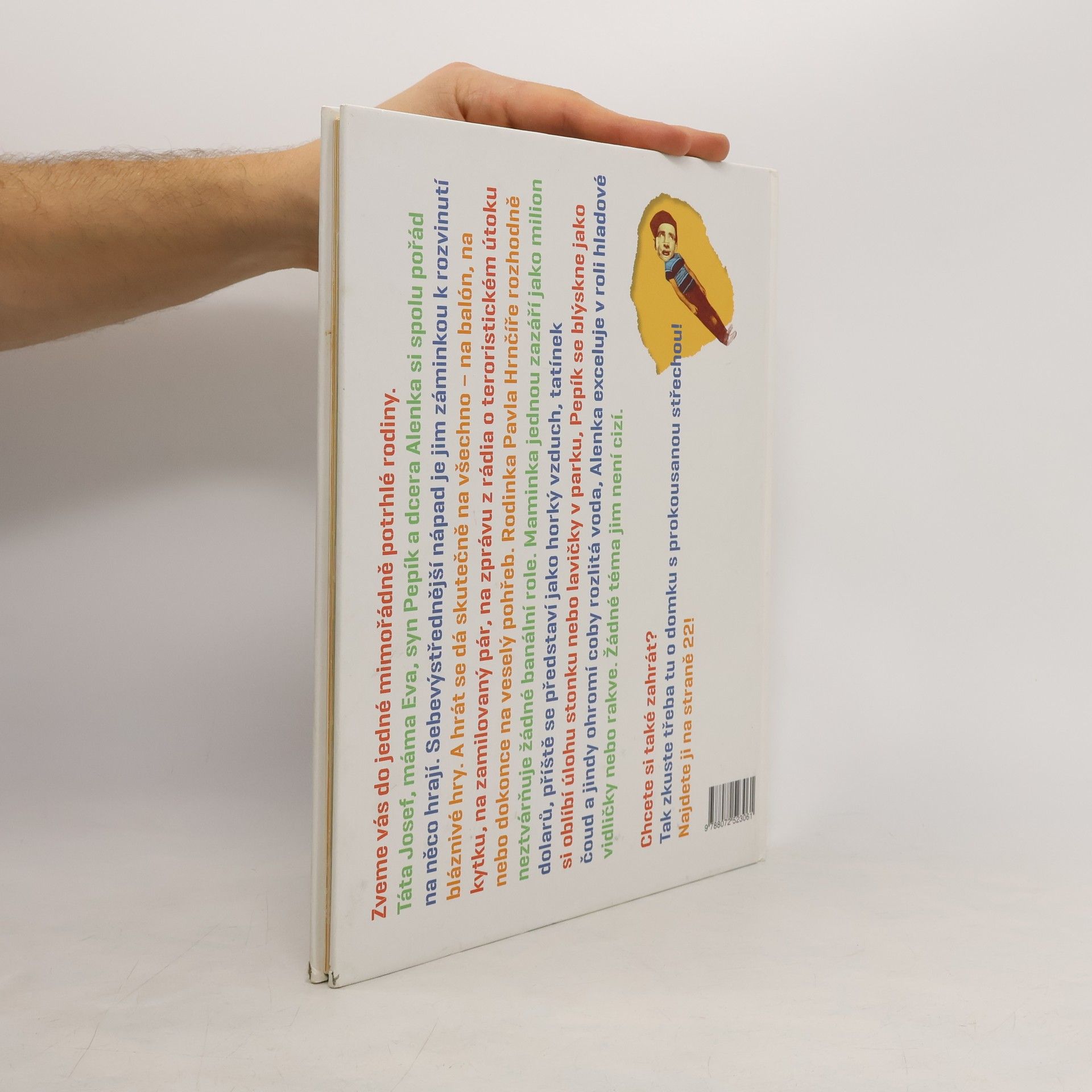 Kniha Pavla Hrnčíře zve čtenáře do jedné mimořádně potrhlé rodiny. Táta Josef, máma Eva, syn Pepík a dcera Alenka si spolu pořád na něco hrají. Sebeabsurdnější situace je jim záminkou k rozvinutí bláznivé hry. A hrát se dá skutečně na všechno - na balón, na kytku, na zamilovaný pár, zprávu z rádia o teroristickém útoku nebo dokonce na veselý pohřeb. Dvanáct her, jejichž rovnocennou součástí jsou ilustrace Michaely Kukovičové, je originálním literárním útvarem se specifickým humorem na hranici absurdity, který pobaví a inspiruje celou rodinu.