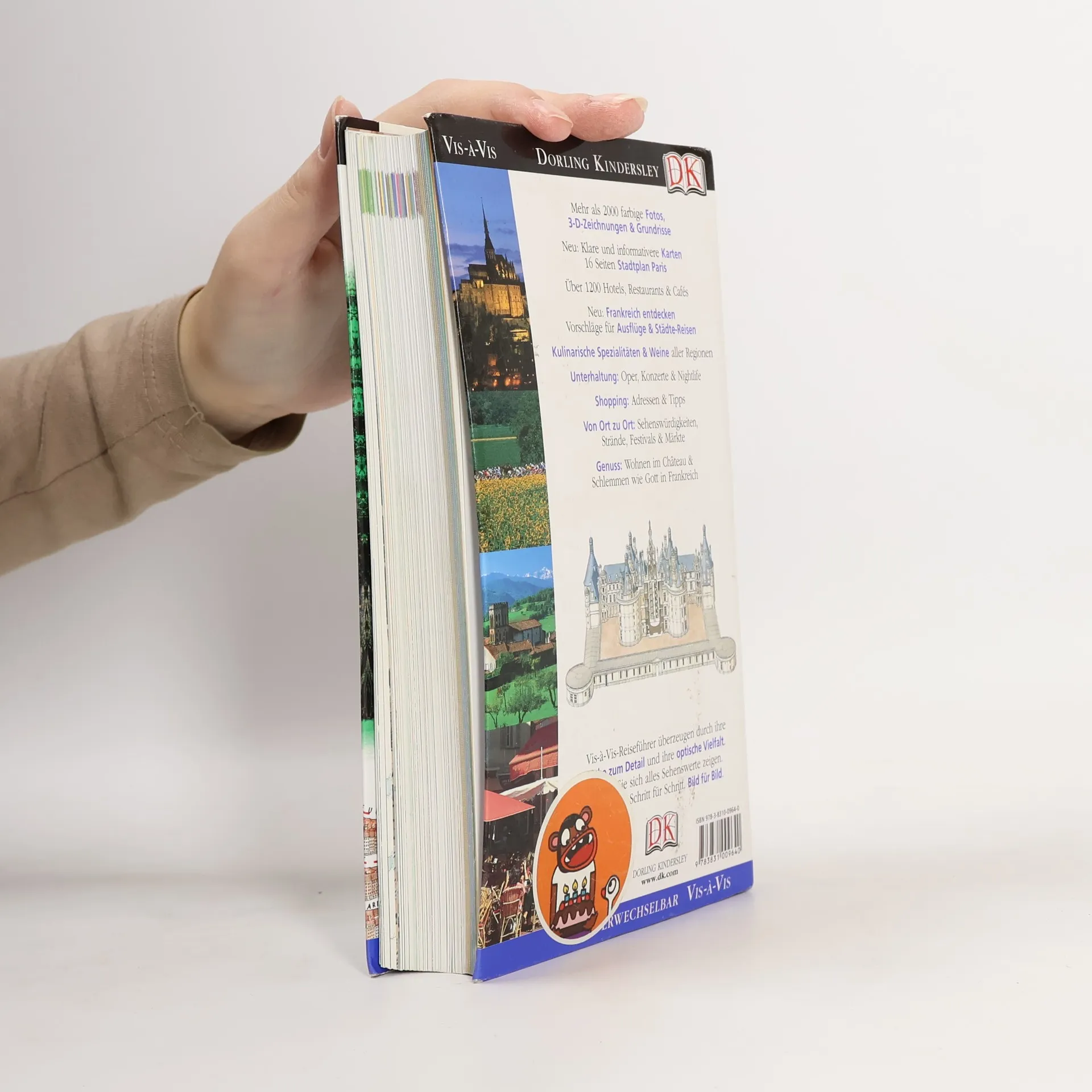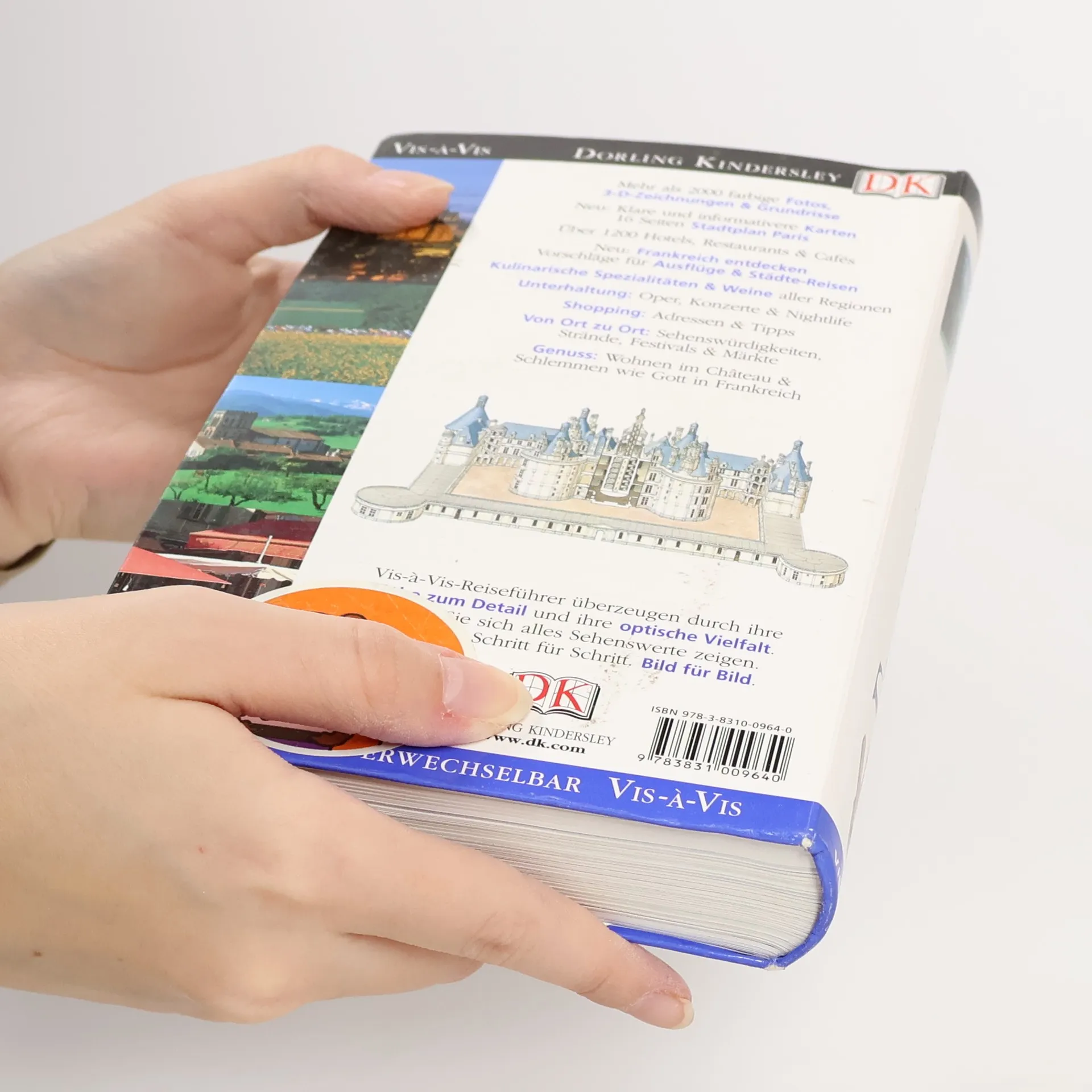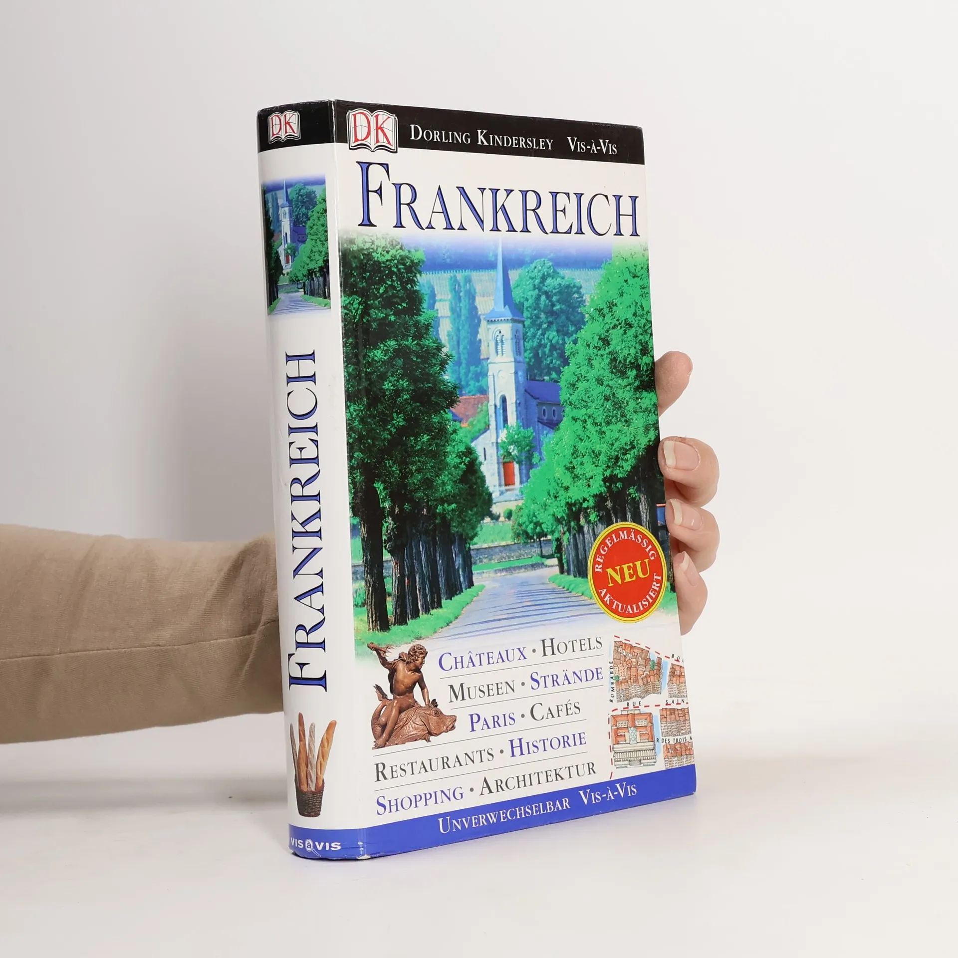 Märchenhafte Ausflüge zu prächtigen Schlössern, unvergessliche Reiserouten entlang traumhafter Küsten, Geheimtipps für die atmosphärischsten Cafés in Paris. mit diesem Vis-à-Vis-Reiseführer reisen Sie „wie Gott in Frankreich“! Attraktionen, die man nicht versäumen darf, erkennen Sie auf den ersten Blick. Die hervorragenden Abbildungen - exakte Schnittzeichnungen, dreidimensionale Grundrisse, Übersichtskarten und Citypläne – zeigen alle wichtigen Sehenswürdigkeiten im Detail und erleichtern die Orientierung vor Ort. Aktuelle Angaben zu Hotels, Restaurants, Shopping und Unterhaltung sowie viele weitere praktische Tipps finden sich im ausführlichen Praxisteil. Hier erfahren Sie auch alles Wissenswerte über typische Spezialitäten und die weltberühmten französischen Weine.