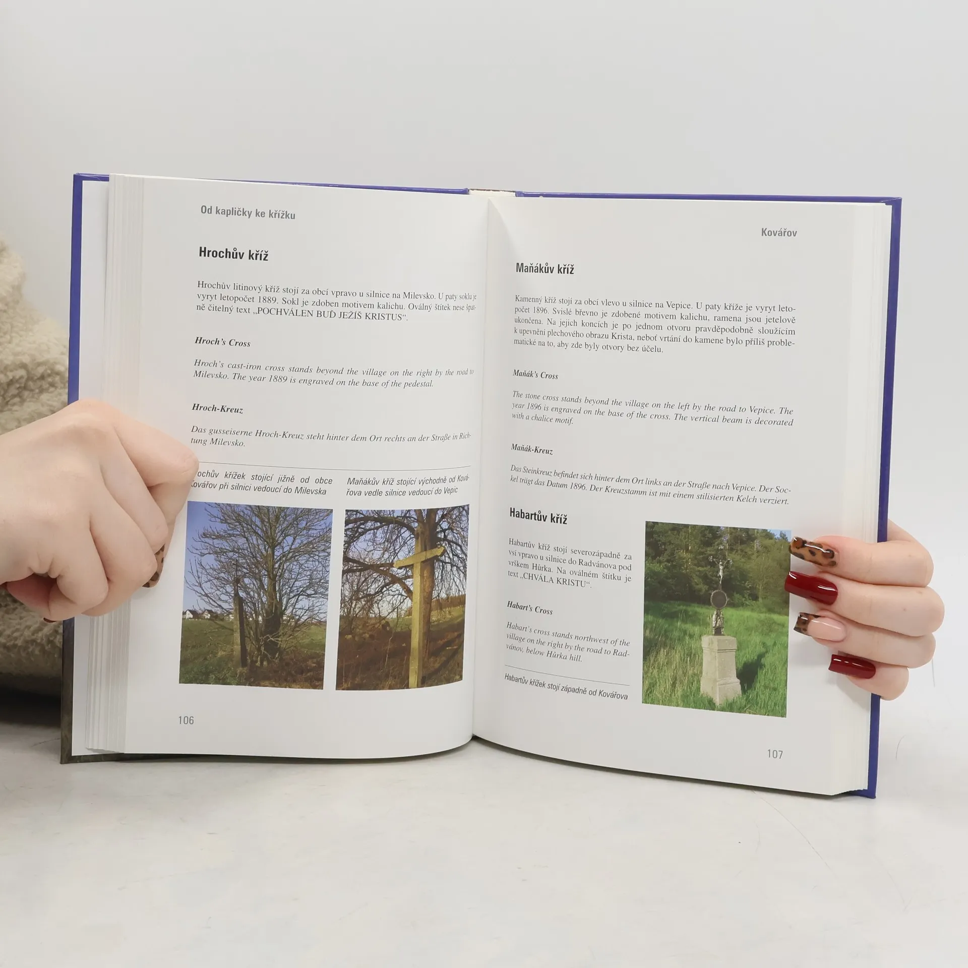 Průvodce po posvátných místech na Kovářovsku. Drobné sakrální památky jsou nedílnou součástí takzvané kulturní krajiny, která se kolem nás a v okolí našich domovů utváří a utvářela po celá staletí. Tato harmonická krajina byla v minulosti nezáměrným vedlejším produktem lidí žijících zemědělským způsobem života. Její vzhled i struktura byla výsledkem po staletí provozovaného tradičního hospodaření a tradičního vzorce sídelní kultury jejích obyvatel. Krajina prodchnutá křesťanským duchovním životem nebyla až do konce 19. století ničím narušena. Od počátku 20. století ji ale mění proces pomalé zástavby a asi největší ránu původní krajina utrpěla v době komunistického režimu. Od té doby už se nevzpamatovala... Kniha obsahuje anglický a německý překlad všech částí.