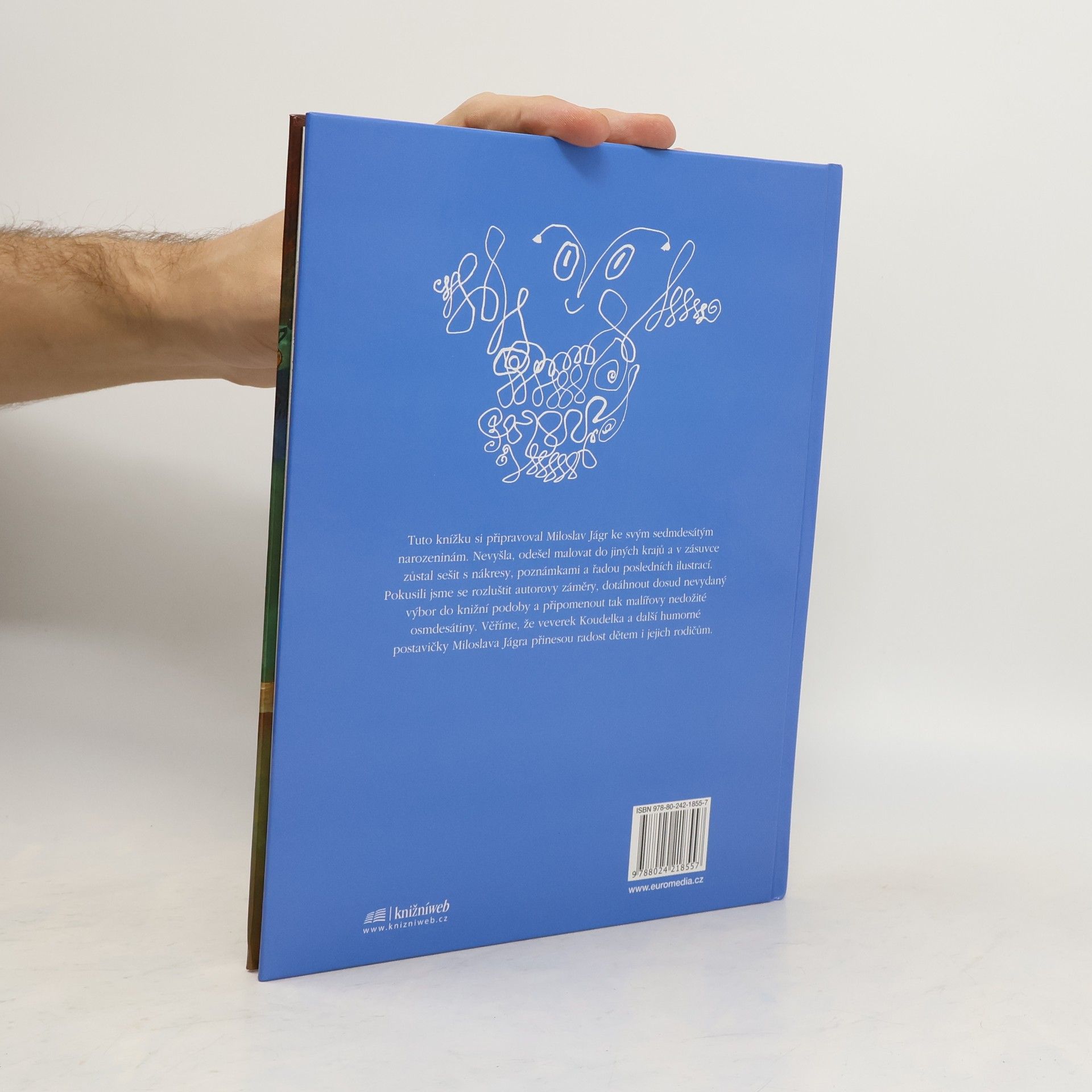 Malíř a ilustrátor Miloslav Jágr byl výjimečný tvůrce, který vynikl nejen ve svém oboru, ale rovněž jako vtipný, originální vypravěč. V knize, vycházející k autorovým nedožitým osmdesátým narozeninám, je soustředěno několik příběhů pro malé čtenáře, které jsou dokladem jeho všestrannosti. Prózy Kluk s křídly a Trpaslík pana Háby už dříve vyšly samostatně, Veverek Koudelka aneb spolužák k pohledání se k dětem dostává poprvé. Humorný příběh o neposedném žáku Koudelkovi, který se díky své všetečné povaze promění ve veverčáka a potom velmi dlouho čeká na vysvobození, osloví děti raného školního věku i jejich starší sourozence a rodiče. Výbor doplňují krátká Slohová cvičení a spousta barevných obrázků.