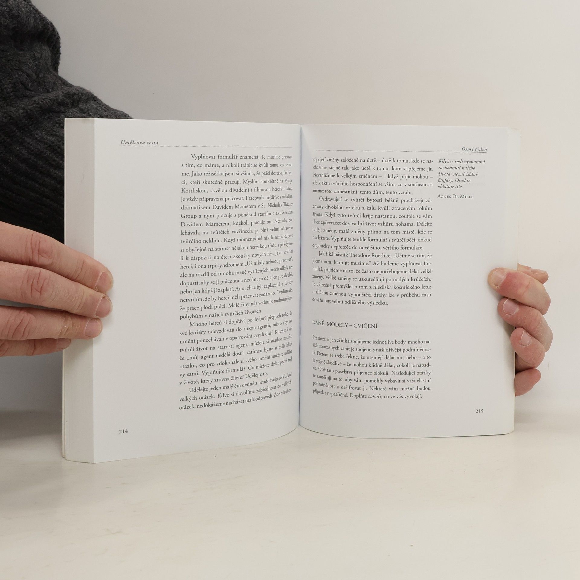 Pokud máte nějaký tvůrčí blok, pak se používáním nástrojů, které poskytuje toto dílo, naučíte tvořit svobodněji. Umělcova cesta nabízí vzrušující metodu, jejíž pomocí lze odstranit tvůrčí blok v jakékoli umělecké činnosti. Svým netušeným pohledem na kreativitu a systematickým postupem, který vede týden po týdnu k uvolnění myšlení a vyjadřování, ovlivnila již čtenáře v nejrůznějších zemích světa.