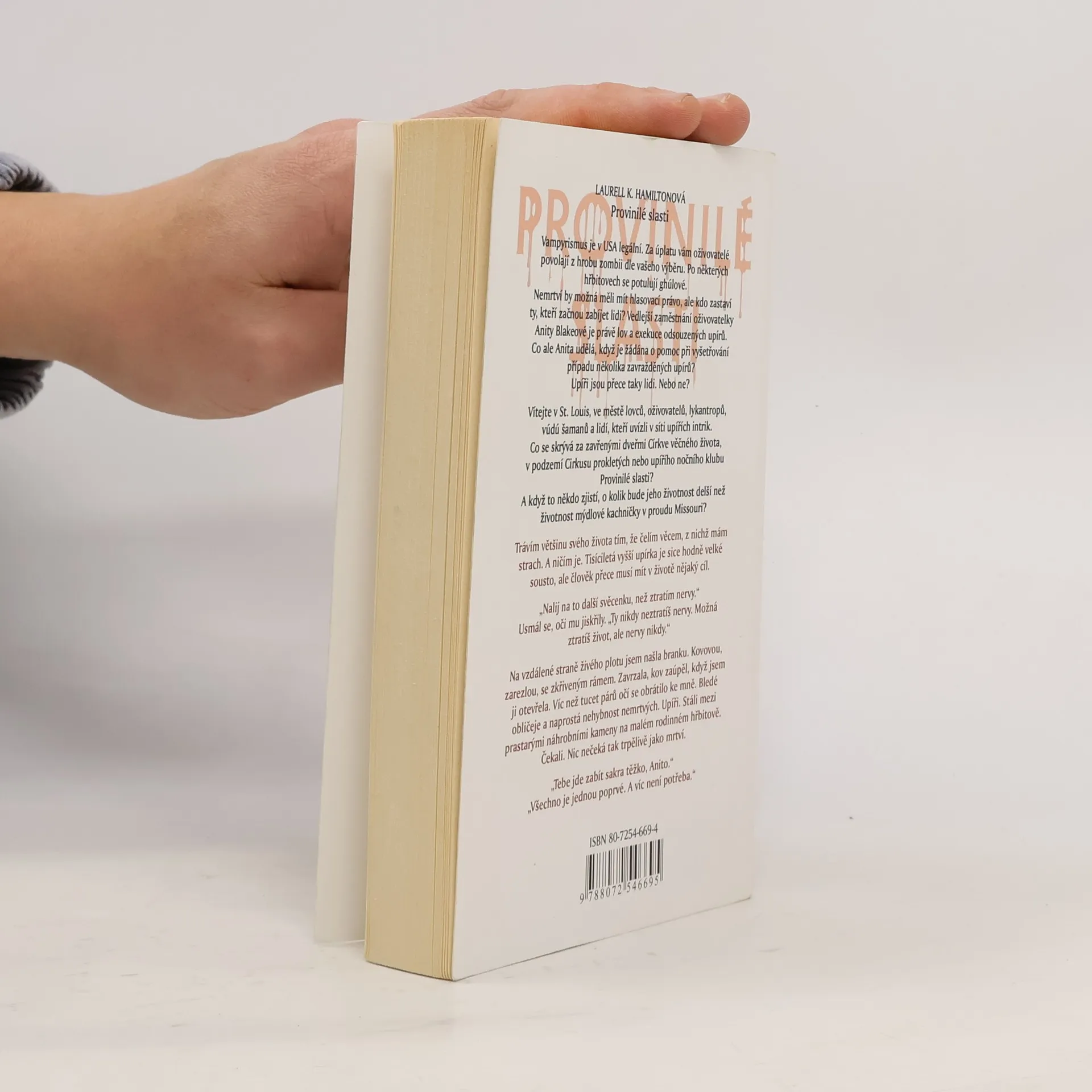 První kniha série Anita Blakeová, Lovec upírů. Vampyrismus je v USA legální. Za úplatu vám oživovatelé povolají z hrobu zombii dle vašeho výběru. Po některých hřbitovech se potulují ghúlové. Nemrtví by možná měli mít hlasovací právo, ale kdo zastaví ty, kteří začnou zabíjet lidi? Vedlejší zaměstnání oživovatelky Anity Blakeové je právě lov a exekuce odsouzených upírů. Co ale Anita udělá, když je žádána o pomoc při vyšetřování případu několika zavražděných upírů? Upíři jsou přece taky lidi. Nebo ne? Vítejte v St. Louis, ve městě lovců, oživovatelů, lykantropů, vúdú šamanů a lidí, kteří uvízli v síti upířích intrik. Co se skrývá za zavřenými dveřmi Církve věčného života, v podzemí Cirkusu prokletých nebo upířího nočního klubu Provinilé slasti? A když to někdo zjistí, o kolik bude jeho životnost delší než životnost mýdlové kachničky v proudu Missouri?