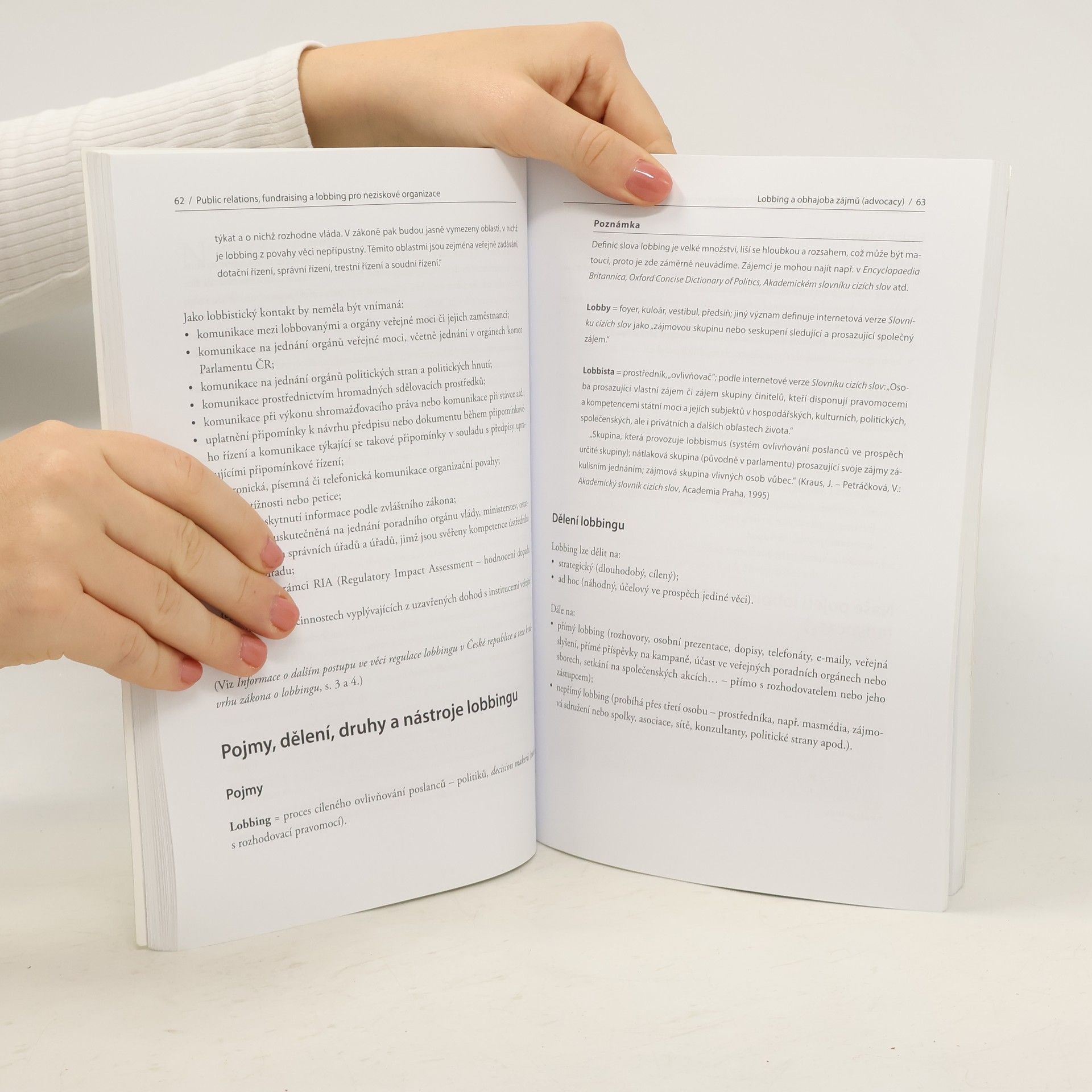 Knížka se věnuje klíčové otázce neziskových organizací: Co je třeba udělat, aby se nezisková organizace stala atraktivní pro veřejnost a byla schopna zajistit dostatek zdrojů na prosazování a naplňování svého poslání? Zkušení odborníci v oblasti řízení neziskových organizací vysvětlují, co je třeba v neziskové organizaci zvládnout pro dosažení tohoto cíle, které procesy při správném fungování přinášejí dobré jméno, oblíbenost a peníze na naplňování její činnosti. Dozvíte se, jak si nezisková organizace může vybudovat základnu svých příznivců, jak se stát významnou neziskovou organizací i jak prosadit potřebné změny ve společnosti či v zákonodárství. Kniha se jako první na českém trhu zaměřuje na lobbing a obhajobu zájmů neziskových organizací v českém prostředí. Praktická a na trhu ojedinělá příručka je určena pracovníkům začínajících i již existujících neziskových organizací, studentům a pedagogům VŠ, dárcům, sponzorům a úředníkům spolupracujícím s neziskovými organizacemi.