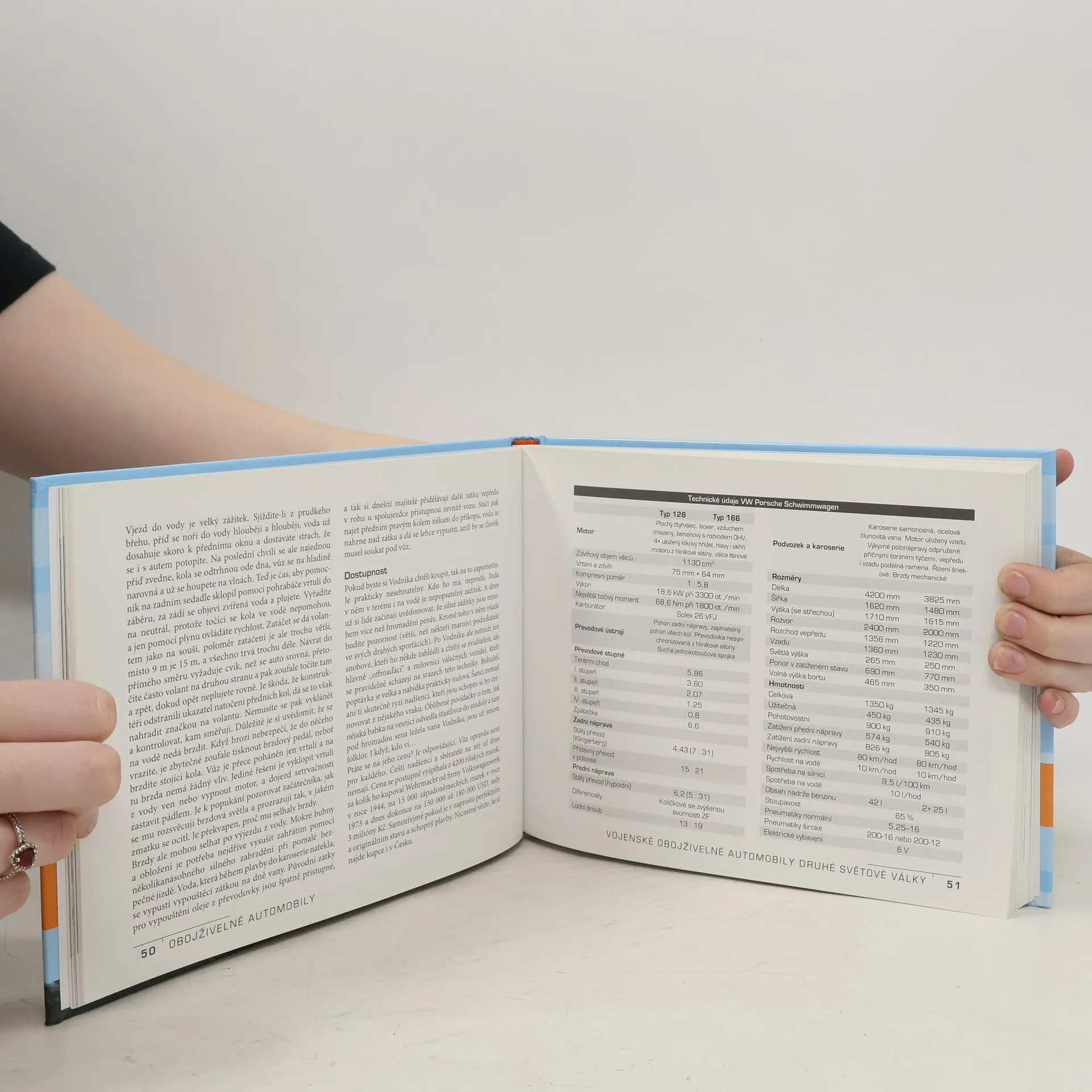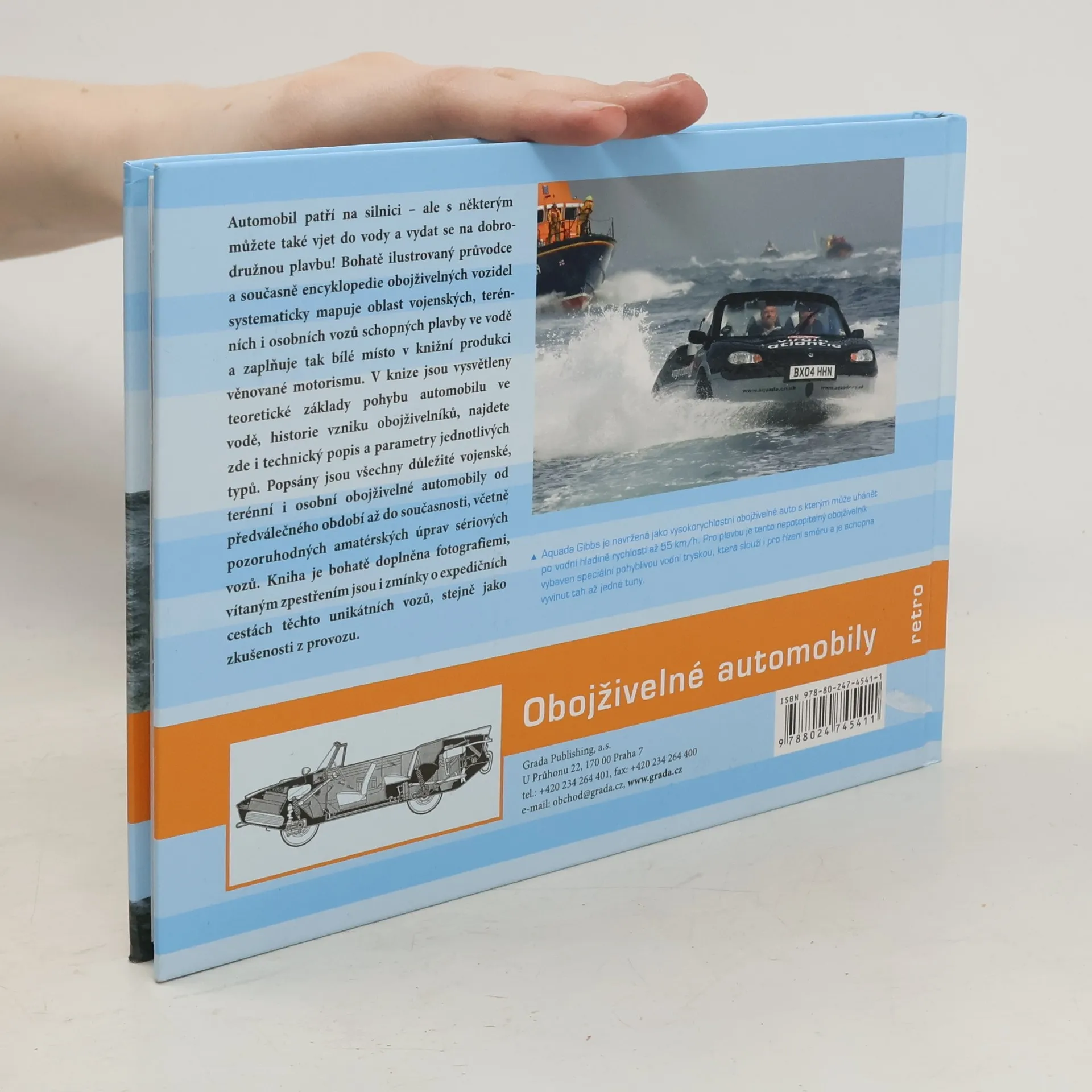 Bohatě ilustrovaný průvodce osobními obojživelnými automobily a současně encyklopedie těchto vozidel. Dosud u nás nebyla podobná kniha vydána. Systematicky mapuje oblast vojenských, terénních i osobních obojživelných vozidel a zaplňuje tak bílé místo v automobilové knižní produkci. Publikace stručně a srozumitelně předkládá teoretické základy pohybu automobilu ve vodě, historii vzniku obojživelníků, technický popis a parametry jednotlivých typů i výkresy a detaily důležitých částí. Popsány jsou všechny důležité vojenské, terénní i osobní automobily od předválečného období až do současnosti, včetně amatérských úprav sériových vozů. Kniha je bohatě fotograficky vybavena a vítaným zpestřením jsou krátké vzpomínky či příběhy z cest těchto unikátních automobilů, stejně jako zkušenosti z provozu.